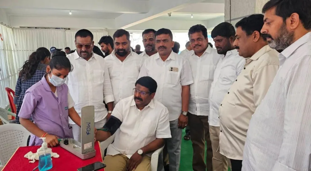 శేరిలింగంపల్లి, ఫిబ్రవరి 22 (నమస్తే శేరిలింగంపల్లి): మియాపూర్ డివిజన్ పరిధిలోని శ్రీ సాయి నగర్ కాలనీలో SKM డెవలపర్స్, అగస్త్య హోమ్స్, సంస్కార ప్రాజెక్ట్స్, RK చారిటబుల్ ఆధ్వర్యంలో మమత అకాడమి ఆఫ్ మెడికల్ సైన్స్ హాస్పిటల్ సహకారంతో నిర్వహించిన ఉచిత వైద్య పరీక్షల క్యాంపు ను స్థానిక నాయకులతో కలసి మాజీ కార్పొరేటర్ ఉప్పలపాటి శ్రీకాంత్ ముఖ్యఅతిథిగా పాల్గొని ప్రారంభించారు. ఈ సందర్భంగా శ్రీకాంత్ మాట్లాడుతూ ఉచిత వైద్య పరీక్షల క్యాంపు ను ఏర్పాటు చేయడం చాలా చాలా సంతోషకరమని, ఈ క్యాంపులో అన్నిరకాల వైద్య, పరీక్షలు నిర్వహించి వైద్య సేవలు అందించడం చాలా గర్వించదగ్గ విషయమని అన్నారు. మారిన జీవనశైలిలో పర్యావరణంలో వస్తున్న అనేక మార్పులవల్ల ప్రజలు అనేక వ్యాధులకు గురవుతున్నారని అన్నారు. ఆరోగ్యమే మహాభాగ్యం కనుక కొన్ని జాగ్రత్తలు తీసుకుంటే మన ఆరోగ్యం మన చేతుల్లోనే ఉంటుందని తెలిపారు. ఈ కార్యక్రమంలో సీనియర్ నాయకుడు బండారు మోహన్ ముదిరాజ్, వైద్య శిబిర నిర్వాహకులు, కరిముల్లా, ప్రశాంత్ రెడ్డి, వెంకట రమణ, రామకృష్ణ, వైద్య సిబ్బంది తదితరులు పాల్గొన్నారు.
