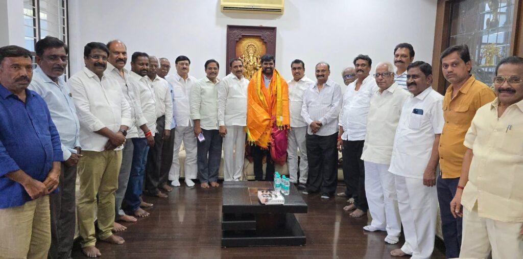 శేరిలింగంప‌ల్లి, ఆగ‌స్టు 3 (న‌మ‌స్తే శేరిలింగంప‌ల్లి): PAC చైర్మన్ ఆరెకపూడి గాంధీ నివాసానికి వ‌చ్చిన‌ NATS ( నార్త్ అమెరికా తెలుగు సొసైటీ) నూతన అధ్యక్షుడు మందడి శ్రీహరిని కార్పొరేటర్లు నార్నె శ్రీనివాస రావు, ఉప్పలపాటి శ్రీకాంత్, కమ్మవారి సేవా సంఘాల సమాఖ్య తెలంగాణ సభ్యులతో కలిసి కమ్మవారి సేవా సంఘాల సమాఖ్య తెలంగాణ రాష్ట్ర అధ్యక్షుడు, PAC చైర్మన్ ఆరెకపూడిగాంధీ శాలువాతో సత్కరించి శుభాకాంక్షలు తెలియజేశారు. ఈ కార్యక్రమంలో కమ్మవారి సేవా సంఘాల సమాఖ్య తెలంగాణ సభ్యులు అడుసుమిల్లి వెంకటేశ్వరరావు, చాపరాల శ్రీనివాస్ దాసు, నాగభూషణం, తాళ్లూరు చంద్రమౌళి, పాండురంగారావు, ప్రసాద్, కిలారు మనోహర్, కోనేరు ప్రసాద్, సైదేశ్వర్ రావు, రాధాకృష్ణ, తిలక్, అనిల్ తదితరులు పాల్గొన్నారు.