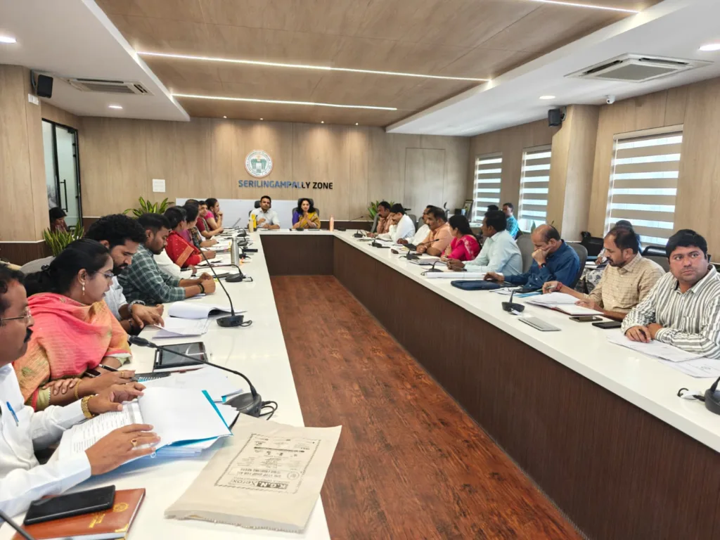 శేరిలింగంప‌ల్లి, ఏప్రిల్ 15 (న‌మ‌స్తే శేరిలింగంప‌ల్లి): శేరిలింగంపల్లి జోన్ పరిధిలో కొన‌సాగుతున్న వివిధ అభివృద్ధి పనులు, ప్రజా సమస్యల పరిష్కారంపై సిఎంసి కమిషనర్ జి సృజన బుధవారం జోనల్ కార్యాలయంలో ఉన్నత స్థాయి సమీక్షా సమావేశం నిర్వహించారు. ఈ సమావేశంలో జోనల్ కమిషనర్ హేమంత్ బోర్ఖడే, ఇంజనీరింగ్, టౌన్ ప్లానింగ్, రెవెన్యూ, యూబీడీ (UBD), యూసీడీ (UCD) విభాగాల అధికారులు పాల్గొన్నారు. ఈ సంద‌ర్భంగా ఆమె మాట్లాడుతూ ప్రస్తుతం కొనసాగుతున్న పనులన్నింటినీ 99 రోజుల ప్రోగ్రాంలో భాగంగా జూన్ 2వ తేదీ లోపు పూర్తి చేయాలని ఆదేశించారు. కనీసం 190 పనులను ఈ గడువులోగా పూర్తి చేయాలని లక్ష్యంగా నిర్ణయించారు. జోన్‌లోని అన్ని రోడ్లకు ఎండ్-టు-ఎండ్ కార్పెటింగ్ చేయాలని, ఎక్కడా గుంతలు లేకుండా జూన్ 2 లోపు మరమ్మత్తులు పూర్తి చేయాలని స్పష్టం చేశారు. అలాగే రోడ్లపై ఉన్న ఆక్రమణలను తక్షణమే తొలగించాలని, వర్షాకాలాన్ని దృష్టిలో ఉంచుకుని ఏప్రిల్ చివరి నాటికి జోన్ అంతటా పూడికతీత పనులు పూర్తి చేయాలని, వీధి దీపాల సమస్యలపై అసిస్టెంట్ ఇంజనీర్లు తక్షణమే స్పందించాలని, ప్రజల ఫిర్యాదులను ఎప్పటికప్పుడు పరిష్కరించాలని సూచించారు.