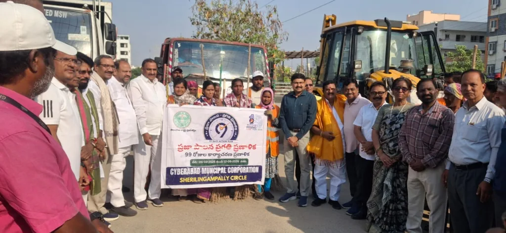 శేరిలింగంపల్లి, ఏప్రిల్ 19 (నమస్తే శేరిలింగంపల్లి): సైబరాబాద్ మున్సిపల్ కార్పొరేషన్ ఆధ్వర్యంలో గచ్చిబౌలి డివిజన్ పరిధిలోని TNGOS కాలనీలో నిర్వహించిన సైబరాబాద్ క్లీన్ స్వీప్ డ్రైవ్ (CCSD)లో భాగంగా శాసన మండలి తొలి చైర్మన్ స్వామి గౌడ్, డీసీ సేవా ఇస్లావత్, CMC అధికారులు, కాలనీ వాసులతో కలిసి PAC చైర్మన్ ఆరెకపూడి గాంధీ ముఖ్యఅతిథిగా పాల్గొని జెండా ఊపి ప్రారంభించారు. ఈ సందర్భంగా PAC చైర్మన్ గాంధీ మాట్లాడుతూ సైబరాబాద్ మున్సిపల్ కార్పొరేషన్ ఆధ్వర్యంలో TNGOS కాలనీ మెగా క్లీన్ స్వీప్ డ్రైవ్ ను చేపట్టడం జరిగిందని, సైబరాబాద్ క్లీన్ స్వీప్ డ్రైవ్ (CCSD) ను ఏర్పాటు చేయడం జరిగిందని, కాలనీలో పేరుకుపోయిన చెత్తకుప్పలను తొలగించడం జరుగుతుందని తెలిపారు. చెత్త సేకరణ కోసం ఒక్కో విభాగానికి ఒక ఆటో లేదా టిప్పర్ నిమగ్నమై ఉంటుందని, కాలనీలలో పరిశుభ్రమైన వాతావరణం కల్పించే దిశగా అన్ని రకాల చర్యలు తీసుకున్నాం అని అన్నారు. కాలనీలో పరిశుభ్రమైన వాతావరణం కల్పించడమే ధ్యేయంగా ముందుకు వెళుతున్నాం అని, పరిసరాలను పరిశుభ్రంగా ఉంచుకోవాలని సూచించారు. ఈ కార్యక్రమంలో CMC అధికారులు, నాయకులు, కాలనీ వాసులు తదితరులు పాల్గొన్నారు.
