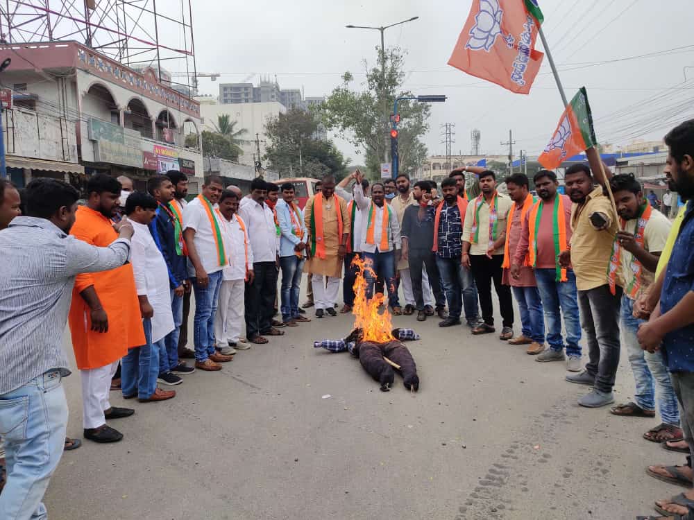 శేరిలింగంపల్లి (నమస్తే శేరిలింగంపల్లి): భారతీయ జనతా యువ మోర్చా రాష్ట్ర అధ్యక్షుడు భాను ప్రకాష్ పై పోలీస్ శాఖ ప్రవర్తించిన తీరుకు నిరసనగా బుధవారం శేరిలింగంపల్లి అసెంబ్లీ బీజేవైఎం కన్వీనర్ కుమ్మరి జితేందర్ ఆధ్వర్యంలో గుల్ మోహర్ పార్క్ చౌరస్తా దగ్గర సీఎం కేసీఆర్ దిష్టిబొమ్మను దహనం చేశారు. ఈ సందర్భంగా నాయకులు మాట్లాడుతూ అశ్లీల చిత్రం డర్టీ హరి లాంటి చిత్రాల వల్ల యువత తప్పుదోవ పట్టేందుకు ఆస్కారం ఉన్నందున, ఈ చిత్ర ప్రదర్శనను వెంటనే ఆపాలని భారతీయ జనతా మోర్చా రాష్ట్ర అధ్యక్షుడు భాను ప్రకాష్ ఆధ్వర్యంలో చిత్రాన్ని ప్రదర్శిస్తున్న టివోలి సినిమా హాల్ ముట్టడికి యత్నిస్తే ఆయన పట్ల పోలీసులు అత్యంత దారుణంగా ప్రవర్తించారని, దీంతో ఆయనకు తీవ్ర గాయాలయ్యాయని అన్నారు. ఈ క్రమంలోనే పోలీసులు వ్యవహరిస్తున్న తీరును బీజేవైఎం తీవ్రంగా ఖండిస్తుందని అన్నారు. తెలంగాణ ప్రజలు కడుతున్న పన్నులతో ఈ రాష్ట్ర ప్రభుత్వం పోలీసులకు జీతాలు ఇస్తుంటే పోలీసులు తెరాస ప్రభుత్వానికి అనుకూలంగా వ్యవహరించడం దారుణం అని అన్నారు.