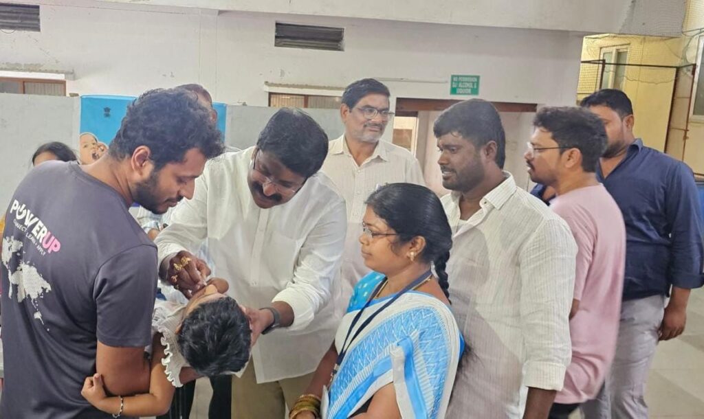 శేరిలింగంపల్లి, అక్టోబర్ 12 (నమస్తే శేరిలింగంపల్లి): మియాపూర్ డివిజన్ పరిధిలోని జయప్రకాశ్ నారాయణ నగర్ కాలనీ కమ్యూనిటీ హాల్ లో నిర్వహించిన పల్స్ పోలియో కార్యక్రమంలో స్థానిక నాయకులు, కాలనీ వాసులతో కలసి మియాపూర్ డివిజన్ కార్పొరేటర్ ఉప్పలపాటి శ్రీకాంత్ ముఖ్య అతిథిగా పాల్గొని చిన్నారులకు పోలియో చుక్కలు వేశారు. ఈ సందర్భంగా కార్పొరేటర్ శ్రీకాంత్ మాట్లాడుతూ అప్పుడే పుట్టిన పసిబిడ్డ నుంచి ఐదేళ్ల లోపు పిల్లలందరికీ పోలియో చుక్కలు తల్లిదండ్రులు తప్పక వేయించాలని అన్నారు. పిల్లలకు పోలియో డ్రాప్స్ వేయటం వల్ల అంగవైకల్యం రాకుండా కాపాడవచ్చు అని అన్నారు. పోలియో రహిత సమాజమే లక్ష్యంగా పల్స్ పోలియో కార్యక్రమాన్ని ప్రభుత్వం నిర్వహిస్తుందని అన్నారు. ఈ కార్యక్రమంలో స్థానిక నాయకులు మోహన్ రావు, శివ ముదిరాజ్, మహేశ్వర్ రెడ్డి, బసవేశ్వర్ రావు, ఆషా వర్కర్ సుజాత, సపోర్టింగ్ స్టాఫ్ అక్తర్ బేగం, సతీష్, ఈశ్వర్, వైద్య సిబ్బంది తదితరులు పాల్గొన్నారు.