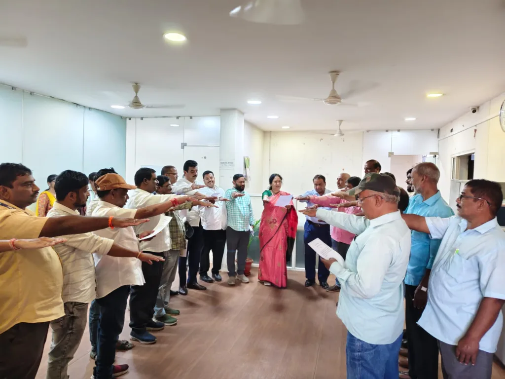 శేరిలింగంపల్లి, మార్చి 6 (నమస్తే శేరిలింగంపల్లి): తెలంగాణ రాష్ట్ర ప్రభుత్వం చేపట్టిన ప్రజా పాలన – ప్రగతి ప్రణాళిక కార్యక్రమంలో భాగంగా శేరిలింగంపల్లిలోని మియాపూర్ సర్కిల్ కార్యాలయంలో డిప్యూటీ కమిషనర్ శశిరేఖ ఆధ్వర్యంలో అన్ని విభాగాలకు చెందిన అధికారులు, సిబ్బంది ప్రతిజ్ఞ చేశారు. కార్యక్రమంలో భాగంగా 99 రోజుల యాక్షన్ ప్లాన్లో ప్రభుత్వ కార్యాలయాలను శుభ్రం చేస్తామని అన్నారు.