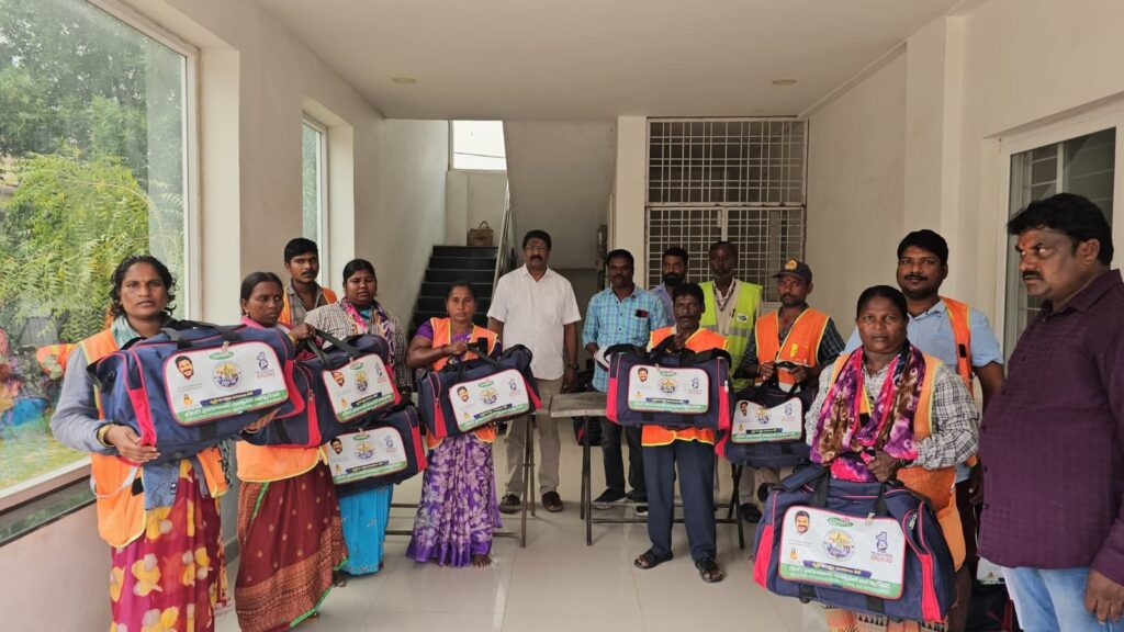 శేరిలింగంపల్లి, ఆగస్టు 5 (నమస్తే శేరిలింగంపల్లి): చందానగర్ సర్కిల్ మియాపూర్ డివిజన్ పరిధిలో పనిచేస్తున్న పారిశుధ్య సిబ్బందికి పారిశుధ్య సూపర్ వైజర్లతో కలిసి PPE కిట్లను పారిశుధ్య సిబ్బందికి మియాపూర్ డివిజన్ కార్పొరేటర్ ఉప్పలపాటి శ్రీకాంత్ అందజేశారు. ఈ సందర్భంగా కార్పొరేటర్ శ్రీకాంత్ మాట్లాడుతూ పరిశుభ్రమైన వాతావరణంలో ఆరోగ్యవంతమైన జీవితం గడిపేందుకు నిరంతరం పనిచేస్తున్న పారిశుద్ధ్య సిబ్బంది సేవలు వెలకట్టలేనివని, అన్ని కాలాల్లో విధులను నిర్వహించే సందర్భంగా పారిశుధ్య సిబ్బంది పడే ఇబ్బందులను దృష్టిలో ఉంచుకొని వారికి అన్నివిధాలుగా ఉపయోగపడే విధంగా సబ్బులు, నూనె, శానిటైజర్, మాస్కులు, టోపీలు, గ్లౌజులు మొదలైన వస్తువులతో కూడిన వ్యక్తిగత రక్షణ పరికరాలతో కూడిన కిట్లను జీహెచ్ఎంసీ పారిశుధ్య సిబ్బందికి ఇచ్చేందుకు రాష్ట్రప్రభుత్వం నిర్ణయం తీసుకున్నందున వాటిని పారిశుద్ధ్య సిబ్బందికి పంపిణీ చేయడం జరిగిందని, సమయానుకూలంగా కిట్లోని రక్షణ వస్తువులను వాడుకొని ఆరోగ్యాన్ని కాపాడుకోవాలని, విధులను చిత్తశుద్దితో నిర్వహించాలని సూచించారు. ఈ కార్యక్రమంలో పారిశుద్ధ్య సూపర్ వైజర్ లు కనకరాజు, మహేష్, ఆగమయ్య, వినయ్ తదితరులు పాల్గొన్నారు.