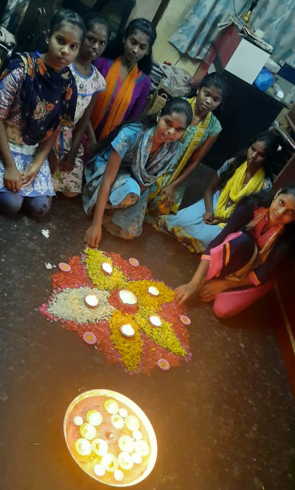 దీపాలు వెలిగించి సంబరాలు జరుపుకుంటున్న సంకల్ప ఫౌండేషన్ చిన్నారులు