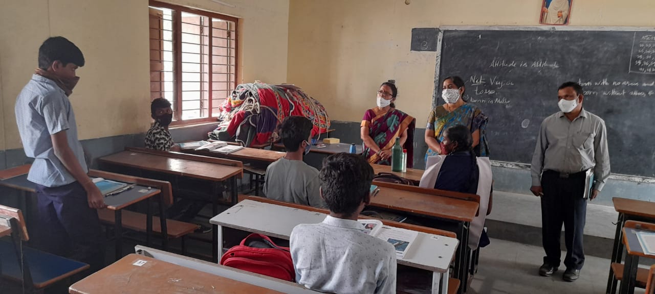 - భౌతిక దూరంతో తరగతులకు హాజరైన విద్యార్థులు