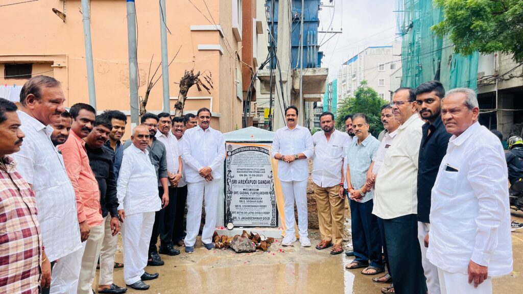శేరిలింగంపల్లి, సెప్టెంబర్ 11 (నమస్తే శేరిలింగంపల్లి): గ్రేటర్ హైదరాబాద్ అభివృద్ధికి తెలంగాణ రాష్ట్ర ప్రభుత్వం, ముఖ్యమంత్రి రేవంత్ రెడ్డి నాయకత్వంలో, మంత్రుల సహకారంతో ముందుకు సాగుతున్నామని టీపీసీసీ రాష్ట్ర ప్రధాన కార్యదర్శి, శేరిలింగంపల్లి నియోజకవర్గం కాంగ్రెస్ పార్టీ ఇంచార్జ్ వి జగదీశ్వర్ గౌడ్ అన్నారు. మాదాపూర్ డివిజన్ పరిధిలో రూ 9.60 కోట్లతో చేపట్టబోయే వివిధ అభివృద్ధి పనులకు శేరిలింగంపల్లి శాసనసభ్యుడు ఆరెకపూడి గాంధీతో కలిసి శంకుస్థాపన చేశారు. ఈ కార్యక్రమంలో నాయకులు, మహిళలు, కాలనీ సభ్యులు తదితరులు పాల్గొన్నారు.