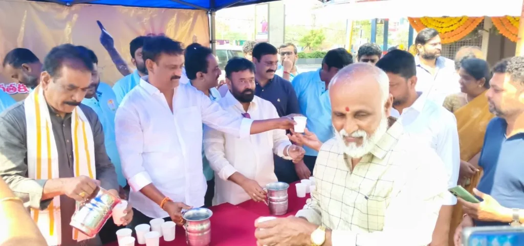శేరిలింగంపల్లి, మార్చి 19 (నమస్తే శేరిలింగంపల్లి): హైదర్ నగర్ డివిజన్ పరిధిలోని ఉషా ముళ్ళపూడి కమాన్ వద్ద క్షత్రియ యూత్ అసోసియేషన్ ఆధ్వర్యంలో ఏర్పాటు చేసిన చలివేంద్రంను మియాపూర్ డివిజన్ మాజీ కార్పొరేటర్ ఉప్పలపాటి శ్రీకాంత్ తో కలిసి మాజీ కార్పొరేటర్ నార్నె శ్రీనివాసరావు ముఖ్యఅతిథిగా పాల్గొని ప్రారంభించారు. అనంతరం చల్లని మజ్జిగను కాలనీ వాసులకు, బాటసారులకు అందజేశారు. ఈ సందర్బంగా నార్నె శ్రీనివాసరావు మాట్లాడుతూ ఉగాది పర్వదినం రోజున చలివేంద్రం ఏర్పాటు చేసుకోవడం చాలా అభినదించ దగ్గ విషయం అని అన్నారు. నగరంలో రోజు రోజుకూ ఎండలు విపరీతంగా పెరిగిపోతున్నాయని, ప్రజలు ఎండలకు నీళ్లకు ఇబ్బంది పడకుండా ఉండటానికి ఈ చలివేంద్రం దాహార్తిని తీర్చడానికి ఎంతగానో ఉపయోగపడుతుందని అన్నారు. ఈ కార్యక్రమంలో నాయకుడు దేశాల్, క్షత్రియ యూత్ అసోసియేషన్ సభ్యులు, కాలనీ వాసులు తదితరులు పాల్గొన్నారు.