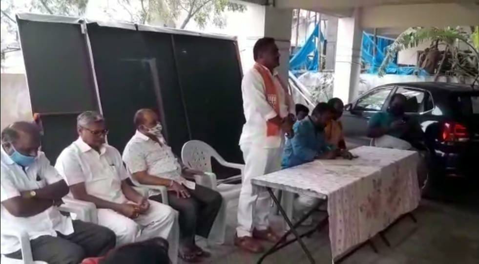 మియాపూర్ (న‌మ‌స్తే శేరిలింగంప‌ల్లి): రాబోయే ఎమ్మెల్సీ ఎన్నిక‌ల్లో బీజేపీ అభ్య‌ర్థుల‌ను గెలిపించేందుకు పార్టీ నాయ‌కులు, కార్య‌క‌ర్త‌లు శాయ‌శ‌క్తులా కృషి చేయాల‌ని ఆ పార్టీ రంగారెడ్డి జిల్లా ఉపాధ్య‌క్షుడు డీఎస్ఆర్‌కే ప్ర‌సాద్ అన్నారు. సోమ‌వారం మియాపూర్ డివిజ‌న్ ప‌రిధిలో నిర్వ‌హించిన డివిజ‌న్ బీజేపీ స‌మీక్షా స‌మావేశంలో పాల్గొన్న ఆయ‌న మాట్లాడుతూ ఎమ్మెల్సీ ఎన్నిక‌ల్లో బీజేపీ అభ్య‌ర్థుల‌ను గెలిపించుకునేందుకు నాయ‌కులు, కార్య‌కర్త‌లు వ్యూహ ర‌చ‌న చేసి అందుకు అనుగుణంగా వ్య‌వ‌హ‌రించాల‌ని అన్నారు. పార్టీని సంస్థాగ‌తంగా బ‌లోపేతం చేసేందుకు కృషి చేయాల‌న్నారు. జిల్లా అధ్య‌క్షుడు సామ రంగారెడ్డి సూచ‌న‌ల మేర‌కు శేరిలింగంప‌ల్లిలో పార్టీని బ‌లోపేతం చేయాల్సిన బాధ్య‌త మ‌నంద‌రిపై ఉంద‌న్నారు. శేరిలింగంప‌ల్లిని బీజేపీకి అడ్డాగా మార్చేందుకు ప్ర‌తి ఒక్క‌రూ కృషి చేయాల‌ని పిలుపునిచ్చారు. ఈ కార్య‌క్ర‌మంలో పార్టీ రాష్ట్ర‌, జిల్లా, నియోజ‌క‌వర్గ‌, డివిజ‌న్ ముఖ్య నాయ‌కులు, కార్య‌క‌ర్త‌లు పాల్గొన్నారు.
