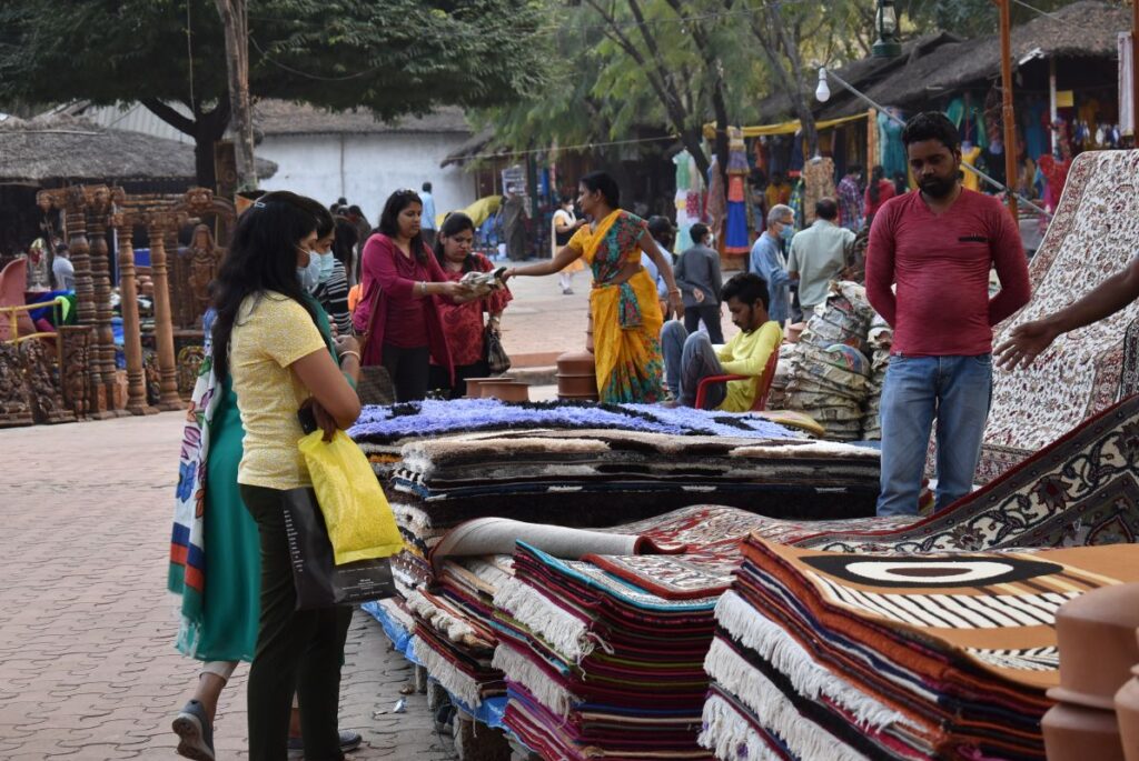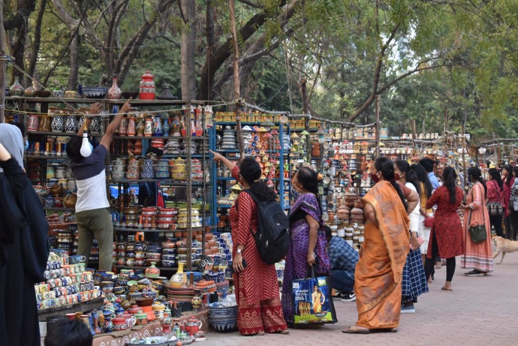 మాదాపూర్ (న‌మ‌స్తే శేరిలింగంప‌ల్లి): మాదాపూర్‌లోని శిల్పారామంలో ఆలిండియా క్రాఫ్ట్స్ మేళా సంద‌డిగా కొన‌సాగుతోంది. ఈ మేళా గురువారంతో ముగియ‌నుండ‌డంతో సంద‌ర్శ‌కులు శిల్పారామంలో సంద‌డి చేస్తున్నారు. ఈ క్ర‌మంలోనే వారు మేళాలో ఏర్పాటు చేసిన స్టాల్స్‌లో అందుబాటులో ఉంచిన ఉత్ప‌త్తుల‌ను కొనుగోలు చేసేందుకు ఆస‌క్తిని చూపిస్తున్నారు. కాగా శిల్పారామంలో మేళాలో భాగంగా మొత్తం 400 స్టాల్స్ ను ఏర్పాటు చేయ‌గా వాటిల్లో ప‌లు రాష్ట్రాల‌కు చెందిన వ‌స్తువులు, చేనేత‌, చేతి వృత్తుల క‌ళాకారుల ఉత్ప‌త్తులు అందుబాటులో ఉన్నాయి.