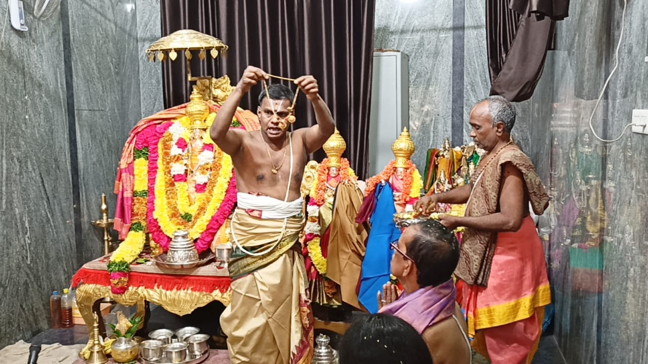 చందానగర్ (నమస్తే శేరిలింగంపల్లి): చందానగర్ లోని విశాఖ శ్రీ శారదా పీఠపాలిత వెంకటేశ్వర ఆలయ సముదాయంలో బుదవారం శ్రీ వారి కళ్యాణ మహోత్సవం ఘనంగా జరిగింది. వెంకటేశ్వరస్వామి జన్మనక్షత్రమైన శ్రవణా నక్షత్రాన్ని పురస్కరించుకుని ఆలయ ప్రధాన అర్చకులు, పీఠం తెలంగాణ రాష్ట్ర ఆగమ సలహాదారు సుదర్శనం సత్యసాయి పర్యవేక్షణలో అర్చనలు అభిషేకాలతో పాటు పద్మావతి గోదాదేవి సమేత శ్రీనివాసుడి కల్యాణం జరిపించారు. అనంతరం ఆలయ ప్రాంగణంలో శాంతి హోమం నిర్వహించారు. ఆలయ పాలక మండలి సభ్యులు, ఆలయ సిబ్బంది, పరిసర ప్రాంతాల భక్తులు పెద్ద సంఖ్యలో పాల్గొని స్వామివారిని దర్శించుకుని, అన్నప్రసాదాన్ని స్వీకరించారు.