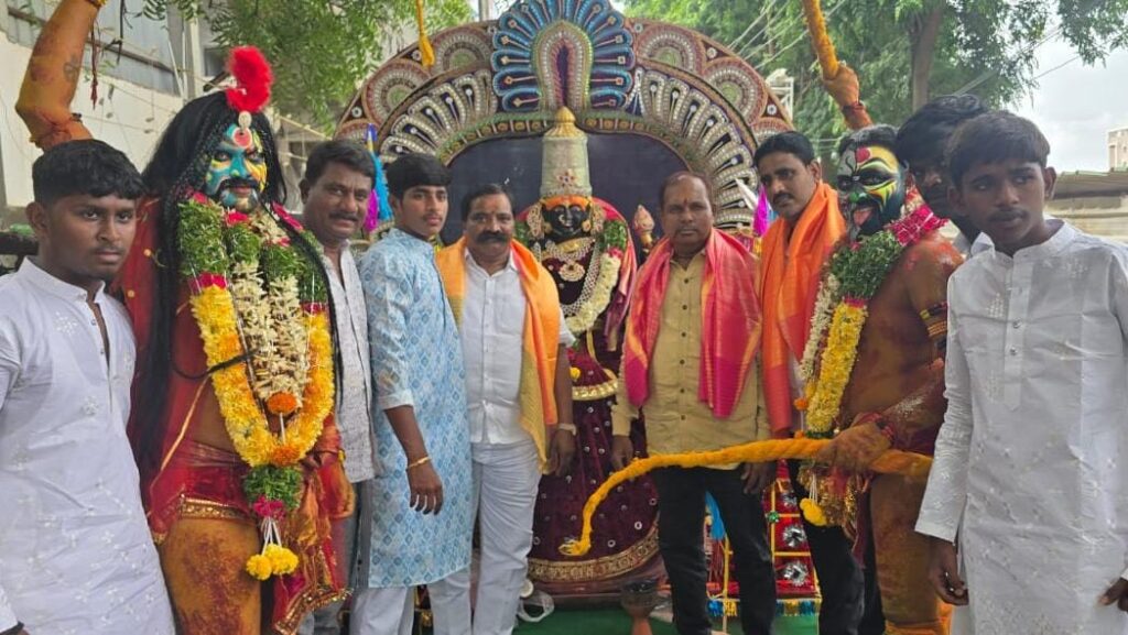 శేరిలింగంపల్లి, ఆగస్టు 4 (నమస్తే శేరిలింగంపల్లి): శేరిలింగంపల్లి ఎల్సిజి క్రికెట్ గ్రౌండ్ వద్ద ఉన్న ఓల్డ్ లింగంపల్లి గ్రామం శ్రీ పోచమ్మ తల్లి యూత్ అసోసియేషన్ సభ్యుల ఆధ్వర్యంలో శ్రీ పోచమ్మ తల్లి తొట్టెల మహోత్సవాన్ని ఘనంగా నిర్వహించారు. ఈ కార్యక్రమానికి ముఖ్య అతిథిగా బీసీ ఐక్యవేదిక తెలంగాణ రాష్ట్ర అధ్యక్షుడు బేరి రామచంద్ర యాదవ్ హాజరయ్యారు. ఈ సందర్భంగా ఆయన కార్యక్రమంలో పాల్గొని అమ్మవారికి ప్రత్యేక పూజలు నిర్వహించారు. అనంతరం మాట్లాడుతూ అమ్మవారి ఆశీస్సులు అందరిపై ఉండాలని కోరుకుంటున్నానని అన్నారు. ఈ సందర్భంగా శ్రీ పోచమ్మ తల్లి యూత్ అసోసియేషన్ సభ్యులను అభినందించారు. యువత చక్కని మార్గంలో ప్రయాణిస్తూ చక్కగా ఎదిగి చెడు మార్గంలో ప్రయాణించకుండా సన్మార్గంలో ప్రయాణిస్తూ సనాతన ధర్మాన్ని పాటిస్తూ దైవాన్ని ప్రార్థిస్తూ భక్తి భావంతో ముందుకు సాగాలని అన్నారు. ఈ సందర్భంగా శ్రీ శ్రీ శ్రీ పోచమ్మ తల్లి అమ్మవారి ఫలహారం బండి ఊరేగింపు కార్యక్రమంలో పోతు రాజులు ప్రదర్శించిన విన్యాసాలు ఆకట్టకున్నాయి. ఈ కార్యక్రమంలో మేకల బాబు యాదవ్, అందెల సత్యనారాయణ యాదవ్, అందెల జయరాం యాదవ్, భరత్, రఘు గౌడ్, కిట్టు ముదిరాజ్, కొయ్యాడ మనీష్ యాదవ్, గ్రామ పెద్దలు, యువజన నాయకులు, భక్తులు పెద్ద ఎత్తున పాల్గొన్నారు.