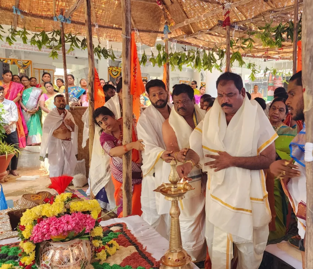 శేరిలింగంపల్లి, ఫిబ్రవరి 18 (నమస్తే శేరిలింగంపల్లి): శ్రీశ్రీశ్రీ మాధవనంద సరస్వతి స్వామి ఆశీస్సులతో శాస్త్రోక్తంగా శ్రీ షిర్డీ సాయినాథ, మార్ఖండేయ స్వామి, సంతాన నాగదేవత అమ్మవారి ప్రతిష్టాపన కార్యక్రమం నిర్వహించగా ఇందులో మాజీ కార్పొరేటర్ రాగం నాగేందర్ యాదవ్, రాష్ట్ర మాజీ సోషల్ వెల్ఫేర్ బోర్డు ఛైర్ పర్సన్ రాగం సుజాత యాదవ్ పాల్గొన్నారు. శేరిలింగంపల్లి డివిజన్ రాజీవ్ గృహకల్పలో రాగం నాగేందర్ యాదవ్ సొంత ఖర్చులతో నూతనంగా నిర్మాణం చేపట్టిన శ్రీ షిర్డీ సాయినాథ, మార్ఖండేయ, సంతాన నాగదేవత అమ్మవారి ప్రతిష్ట కార్యక్రమం మెదటి రోజులో భాగంగా వేద పండితుల మంత్రోచ్ఛరణల మధ్య రాగం కుటుంబ సభ్యులు శాస్త్రోక్తంగా గణపతి పూజ, గోపూజ, వేద పఠనం, పుణ్యాఃవాచనం, పంచగవ్య ప్రాశనం, ఋత్విక్వరణం, దీక్షాధారణ, యాగాశాల ప్రవేశం, అఖండ దీపారాధన, అంకురార్పణ, అగ్ని ప్రతిష్ట, వాస్తు, యోగిని, నవగ్రహ, క్షేత్ర పాలక, సర్వతోభద్ర, మండప స్థాపన, ప్రధాన కలశ స్థాపన, హారతి, ప్రత్యేక పూజలను క్రమబద్ధంగా నిర్వహించారు. అనంతరం భక్తులకు తీర్థ ప్రసాదాలను అందించారు. ఈ కార్యక్రమంలో సీనియర్ నాయకులు, మహిళా నాయకురాళ్లు, భక్తులు తదితరులు పాల్గొన్నారు.