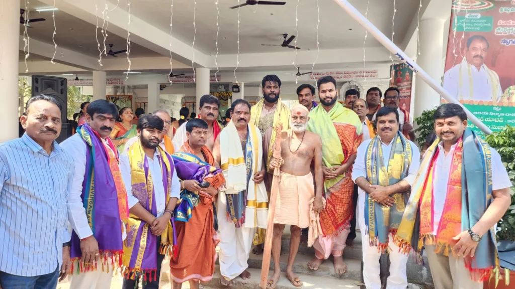 శేరిలింగంపల్లి, ఫిబ్రవరి 20 (నమస్తే శేరిలింగంపల్లి): శేరిలింగంపల్లి డివిజన్ రాజీవ్ గృహకల్పలో ఆధ్యాత్మిక చింతనతో ప్రజలందరూ సుఖసంతోషాలతో, ఆయురారోగ్యాలతో ఉండాలని, శేరిలింగంపల్లి అభివృద్ధికి భగవంతుడి ఆశీస్సులు ఉండాలని మాజీ కార్పొరేటర్ రాగం నాగేందర్ యాదవ్ అన్నారు. ఈ సందర్భంగా రాగం నాగేందర్ యాదవ్ సొంత ఖర్చులతో నిర్మించిన ఆలయాన్ని ప్రారంభించారు. శ్రీశ్రీశ్రీ మాధవానంద సరస్వతి స్వామి పర్యవేక్షణలో శ్రీ షిర్డి సాయినాథ, మార్కండేయ స్వామి, సంతాన నాగదేవత అమ్మవారి విగ్రహ ప్రతిష్టాపన మహోత్సవం నిర్వహించగా గత మూడు రోజుల నుంచి జరుగుతున్న ఉత్సవాలు చివరి అంకానికి చేరుకున్నాయి. ఉదయం నుంచే రిత్వికుల మంత్రోచ్ఛారణల నడుమ యజ్ఞశాలలో హోమాలు నిర్వహించారు. పలు పూజా క్రతువులను పూర్తి చేసిన రుత్వికులు ప్రధాన ఆలయాలతో పాటు ఉపాలయాల గోపురాలపై కలశ ప్రతిష్ట చేపట్టారు. అనంతరం శ్రీ షిర్డి సాయినాథ, మార్కండేయ స్వామి, సంతాన నాగదేవత అమ్మవారి విగ్రహ ప్రతిష్ట కార్యక్రమాన్ని ప్రారంభించారు. దేవతల పాదాల వద్ద బీజాక్షర బంగారు యంత్రాన్ని ఉంచడంతోపాటు పీఠంపై విగ్రహాలను ప్రతిష్టించారు.
