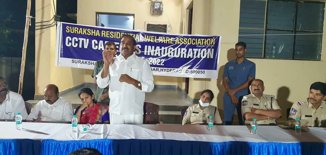 ఈ సందర్బంగా ఆయన మాట్లాడుతూ సురక్ష ఎన్ క్లేవ్ కాలనీలో సీసీ కెమెరాల ఏర్పాటు చేసుకోవడం అభినందనీయం అన్నారు. సీసీ కెమెరాలు నేర శోధన, నేరాల నివారణకు తోడ్పడతాయన్నారు. ఈ కార్యక్రమంలో చందానగర్ డివిజన్ అధ్యక్షుడు రఘునాథ్ రెడ్డి , మాదాపూర్ డివిజన్ అధ్యక్షుడు ఎర్రగుడ్ల శ్రీనివాస్ యాదవ్, నాయకులు నరేంద్ర బల్ల, సందీప్, కాలనీ అధ్యక్షుడు మాల్లారెడ్డి, సెక్రటరీ శ్రీశైలం, చౌదరీ, హుస్సేన్, నిఖిల్ రెడ్డి, దేవినేని రవి, నరేందర్ రెడ్డి, విరేశం, నర్సింలు, కాలనీ వాసులు తదితరులు పాల్గొన్నారు.