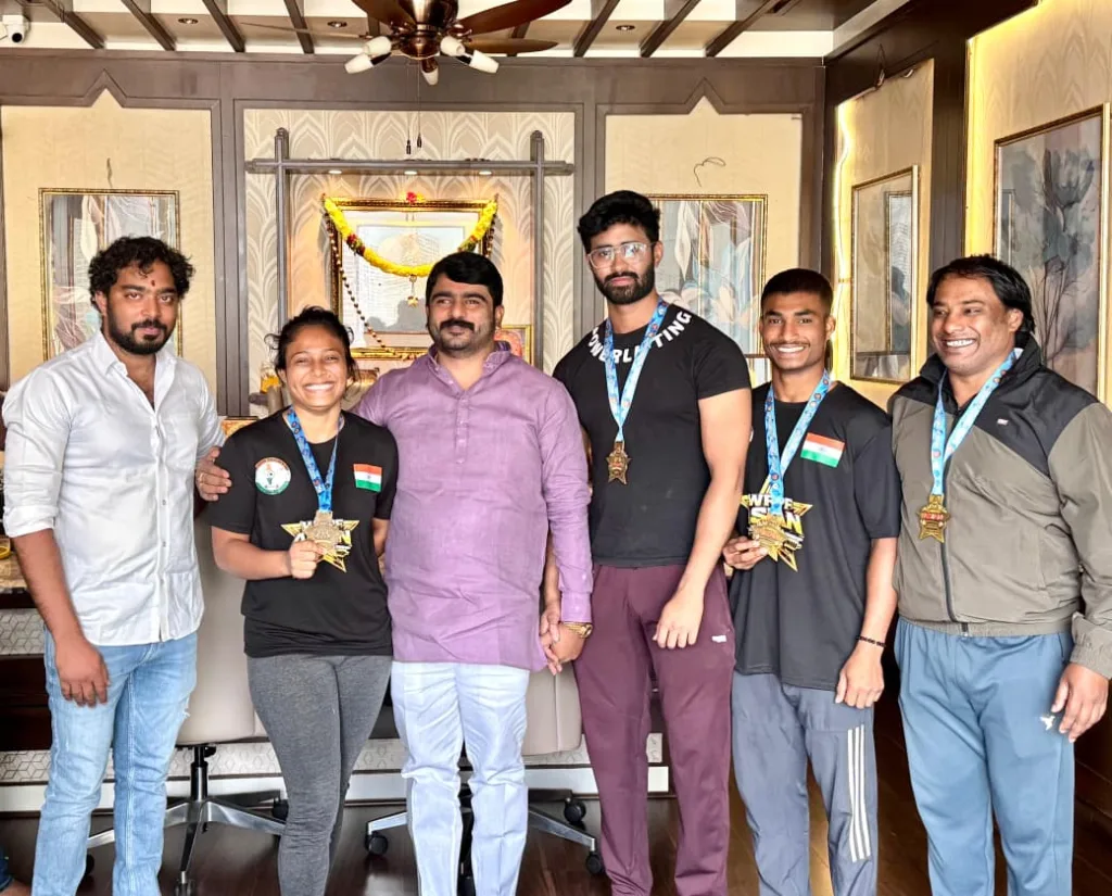 శేరిలింగంపల్లి, ఫిబ్రవరి 28 (నమస్తే శేరిలింగంపల్లి): తెలంగాణ ప్రభుత్వం క్రీడలకు పెద్దపీట వేస్తూ యువతను ఆకట్టుకుంటోందని కాంగ్రెస్ పార్టీ సీనియర్ నాయకుడు అనిల్ కుమార్ యాదవ్ అన్నారు. WRPF ఏషియన్ పవర్ లిఫ్టింగ్ చాంపియన్ షిప్ విజేతలు, గోల్డ్ మెడల్ సాధించిన S.కారుణ్య, S.హర్షవర్ధన్ రావు, వసంత్ రాథోడ్, ఎండి కైఫ్ సన్మాన కార్యక్రమంలో అనిల్ కుమార్ యాదవ్ పాల్గొన్నారు. ఈ సందర్భంగా అనిల్ కుమార్ యాదవ్ మాట్లాడుతూ తెలంగాణ రాష్ట్ర కీర్తిని ప్రపంచానికి చాటిచెప్పిన క్రీడాకారులకు అండగా ఉంటానని హామీ ఇచ్చారు. ఈ కార్యక్రమంలో నాయకులు తదితరులు పాల్గొన్నారు.
