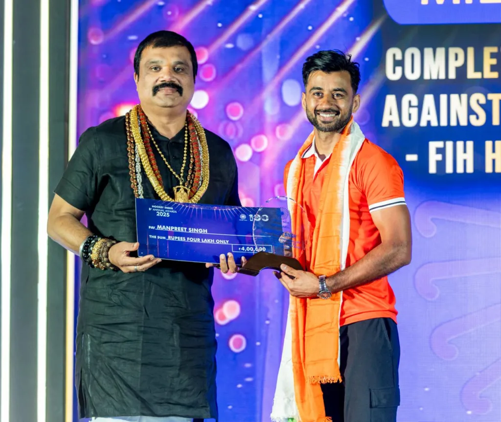 శేరిలింగంప‌ల్లి, మార్చి 27 (న‌మ‌స్తే శేరిలింగంప‌ల్లి): దేశ రాజధాని ఢిల్లీలో నిర్వహించిన హాకీ ఇండియా అవార్డ్స్‌ ప్రదానోత్సవ కార్యక్రమంలో క్రీడా శాఖామంత్రి రక్ష నిఖిల్ ఖాడ్సేతో కలిసి బెస్ట్ ప్లేయర్ అవార్డు పొందిన హాకీ జాతీయ క్రీడాకారులు హ‌ర్మోన్ ప్రీత్ సింగ్, మాన్ ప్రీత్ సింగ్ లకు తెలంగాణ హాకీ అసోసియేష‌న్ అధ్య‌క్షుడు కొండా విజయ్ కుమార్ చెక్కులను అందజేశారు. తెలంగాణలో మరిన్ని అంతర్జాతీయ టోర్నమెంట్ల‌ను నిర్వహించడం జరుగుతుంద‌ని కొండా విజయ్ కుమార్ తెలిపారు.