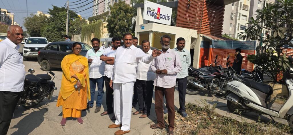 శేరిలింగంప‌ల్లి, డిసెంబ‌ర్ 15 (న‌మ‌స్తే శేరిలింగంప‌ల్లి): మాదాపూర్ డివిజన్ పరిధిలోని గోకుల్ ప్లాట్స్ కాలనీలో రూ. 1 కోటి 45 లక్షల అంచనావ్యయంతో నూతనంగా చేపట్టబోయే BT రోడ్డు, వరద నీటి కాలువ‌ నిర్మాణం పనులను కార్పొరేటర్లు నార్నె శ్రీనివాసరావు, ఉప్పలపాటి శ్రీకాంత్, GHMC ఇంజనీరింగ్ విభాగం అధికారులతో కలిసి PAC చైర్మన్ ఆరెకపూడి గాంధీ పరిశీలించారు. ఈ సందర్భంగా PAC చైర్మన్ గాంధీ మాట్లాడుతూ ప్రజల సంక్షేమం, శేరిలింగంపల్లి నియోజకవర్గం కాలనీల అభివృద్దే ధ్యేయంగా ముందుకు వెళుతున్నాం అని అన్నారు. గోకుల్ ప్లాట్స్ కాలనీలో రూ. 1 కోటి 45 లక్షల అంచనావ్యయంతో నూతనంగా చేపట్టబోయే BT రోడ్డు, వరద నీటి కాలువ‌ నిర్మాణం పనులు త్వరితగతిన పూర్తి చేయాలని, అసంపూర్తిగా మిగిలిపోయిన వరద నీటి కాలువ‌ నిర్మాణం పనులు త్వరితగతిన పూర్తి చేయాలని అన్నారు. ఈ కార్యక్రమంలో GHMC ఇంజనీరింగ్ విభాగం అధికారులు DE శ్రీదేవి, నాయకులు బ్రిక్ శ్రీనివాస్, గుమ్మడి శ్రీనివాస్ , సాంబయ్య, సంజీవ రెడ్డి, పూర్ణ తదితరులు పాల్గొన్నారు.