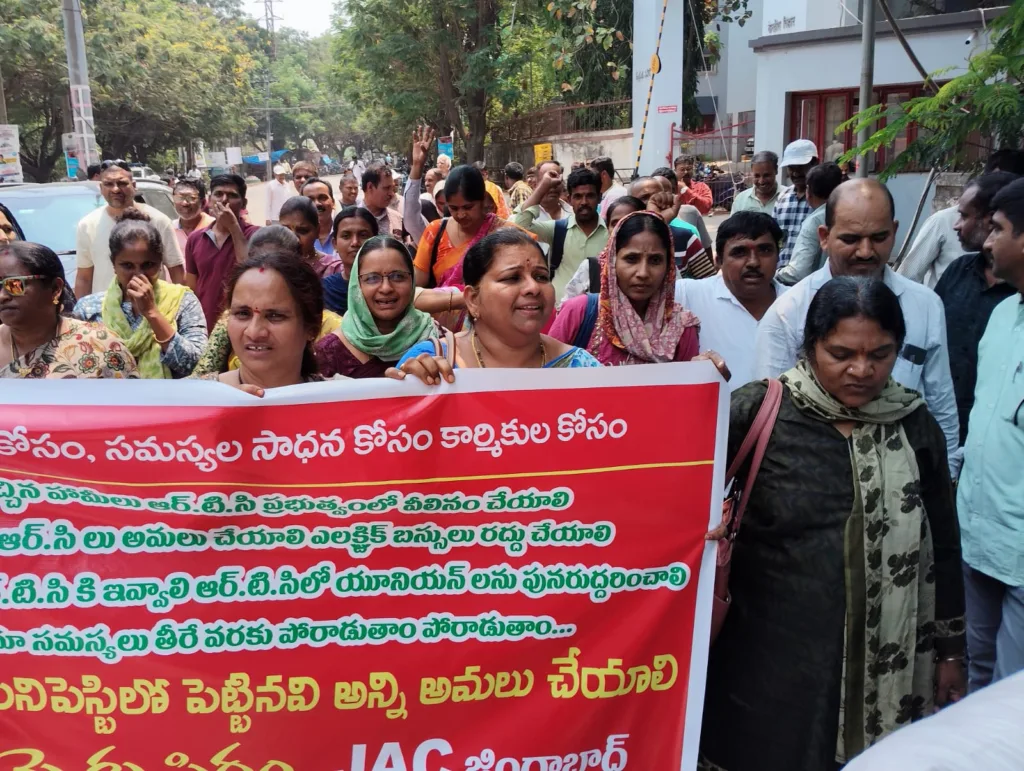 శేరిలింగంపల్లి, ఏప్రిల్ 23 (నమస్తే శేరిలింగంపల్లి): రాష్ట్ర ఆర్టీసీ కార్మికుల సమస్యలను వెంటనే పరిష్కరించాలని డిమాండ్ చేస్తూ గురువారం ఆర్టీసీ కార్మికులు ర్యాలీ నిర్వహించారు. మియాపూర్ బస్ డిపో నుంచి మియాపూర్ ఎక్స్ రోడ్డు వరకు జేఏసీ ఆధ్వర్యంలో నిర్వహించిన ఈ ర్యాలీలో నాయకులు కె.రాజబాబు, బాషాగౌడ్, రాఘవేందర్, దర్గయ్య, శ్రీనివాస్ గౌడ్, భాస్కర్, పాండు, బీఎస్ రాజు, వసంత, రుక్మిణి పాల్గొన్నారు. ఈ సందర్భంగా వారు మాట్లాడుతూ కాంగ్రెస్ ప్రభుత్వం ఎన్నికలకు ముందు ఆర్టీసీ కార్మికులకు ఇచ్చిన హామీలను వెంటనే అమలు చేయాలని అన్నారు. కాంగ్రెస్ పార్టీ ఎన్నికల ముందు ఆర్టీసీని ప్రభుత్వంలో విలీనం చేసి కార్మికుల సమస్యలను పరిష్కరిస్తామని హామీ ఇచ్చి అమలు చేయడం లేదన్నారు. కార్మికుల న్యాయమైన డిమాండ్లను ప్రభుత్వం వెంటనే అమలు చేయాలని కోరారు. సీఎం రేవంత్ రెడ్డి ఆర్టీసీ కార్మికుల సమస్యలు పరిష్కరించడంలో నిర్లక్ష్యం చేస్తున్నారని ఆరోపించారు.