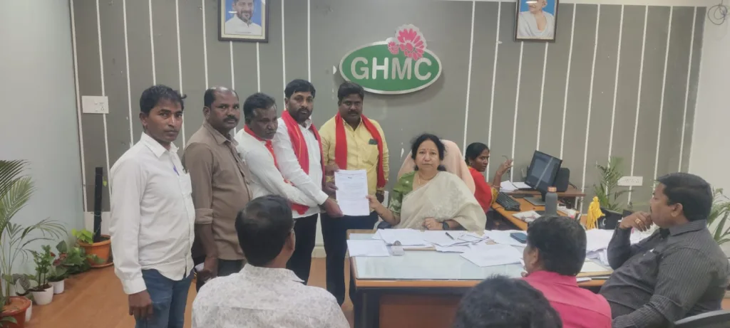 శేరిలింగంపల్లి, ఫిబ్ర‌వ‌రి 10 (న‌మ‌స్తే శేరిలింగంపల్లి): ఫిబ్రవరి 12న‌ జరిగే దేశవ్యాప్త సమ్మెలో జిహెచ్ఎంసి కార్మికులందరూ పాల్గొని సమ్మెను జయప్రదం చేయాలని జిహెచ్ఎంసి మియాపూర్ సర్కిల్ కమిషనర్ కి సమ్మె నోటీసు అంద‌జేశారు. కార్మికులకు కనీస వేతనం 26 వేల రూపాయలు ఇవ్వాలని, ఈఎస్ఐ , పిఎఫ్ సక్రమంగా అమలు చేయాలని, కార్మికులందరికీ డబుల్ బెడ్రూం ఇండ్లు ఇవ్వాలని, ప్రమాదవశాత్తు చనిపోయిన కార్మికులకు రూ.25 లక్షలు ఇవ్వాలని, పనిచేస్తున్న క్రమంలో ప్రమాదం జరిగి గాయాలు అయితే 5 లక్షల రూపాయలు ఇవ్వాలని అన్నారు. ఈ కార్యక్రమంలో శేరిలింగంపల్లి సిఐటియు కార్యదర్శి కొంగరి కృష్ణ , ఏఐటీయూసీ కార్యదర్శి చందు, శీను, ఏఐసిటియు దానయ్య, నారాయణ పాల్గొన్నారు.
