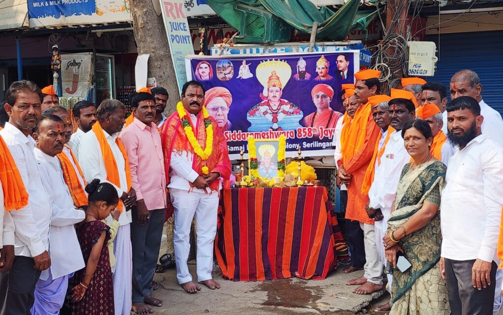 శేరిలింగంపల్లి, జనవరి 14 (నమస్తే శేరిలింగంపల్లి): శేరిలింగంపల్లి డివిజన్ లోని రాజీవ్ గృహకల్పలో శ్రీశ్రీశ్రీ సిద్దిరామేశ్వర స్వామి జయంతిని పురస్కరించుకుని స్థానిక సంఘ సభ్యులు, వివిధ ప్రాంతాల నుండి విచ్చేసిన సంఘ సభ్యుల ఆధ్వర్యంలో నిర్వహించిన జయంతి ఉత్సవ కార్యక్రమంలో శేరిలింగంపల్లి కార్పొరేటర్ రాగం నాగేందర్ యాదవ్ ముఖ్య అతిథిగా పాల్గొని శ్రీ సిద్ధిరామేశ్వర స్వామి వారి చిత్రపటానికి పూలమాలలు వేసి ప్రత్యేక పూజ కార్యక్రమాలు నిర్వహించారు. ఈ సందర్భంగా కార్పొరేటర్ మాట్లాడుతూ 858 సంవత్సరాల క్రితం సోలాపూర్ లో జన్మించిన శ్రీ సిద్ధి రామేశ్వర స్వామి ఆ రోజుల్లోనే కుల వ్యవస్థ ఉండకూడదని కులమతాలకు అతీతంగా ప్రజలందరూ సమానంగా ఉండాలనే భావనతో కృషిచేసిన మహోన్నతమైన వ్యక్తి అని పేర్కొన్నారు.