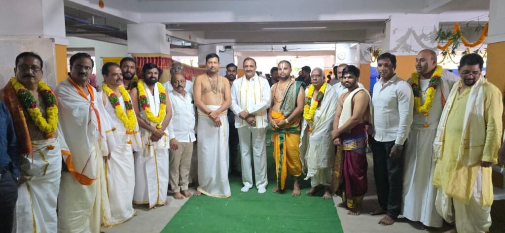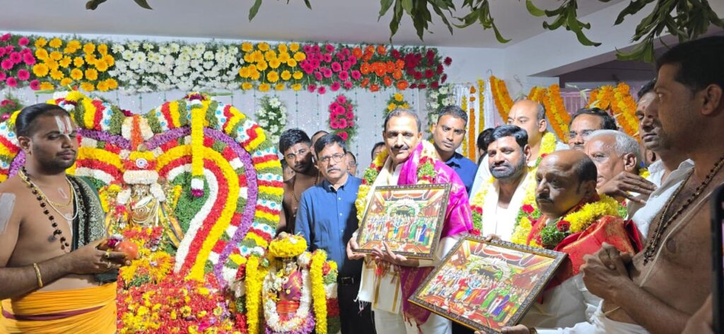 శేరిలింగంపల్లి, న‌వంబ‌ర్ 9 (న‌మ‌స్తే శేరిలింగంపల్లి): చందానగర్ డివిజన్ పరిధిలోని శ్రీదేవి థియేటర్ రోడ్డులో ఉన్న సాయి రాఘవ అపార్ట్మెంట్స్ లో నిర్వ‌హించిన శ్రీ వెంకటేశ్వర పద్మావతి అమ్మవార్ల కళ్యాణమహోత్సవం కార్యక్రమంలో సీనియర్ నాయకుడు రఘునాథ్ రెడ్డితో కలిసి PAC చైర్మన్ ఆరెకపూడి గాంధీ ముఖ్య అతిథిగా పాల్గొని ప్రత్యేక పూజలు నిర్వ‌హించారు. ఈ కార్యక్రమంలో నాయకులు ఎర్రగుడ్ల శ్రీనివాస్ యాదవ్, రఘునాథ్ రెడ్డి , నరేందర్ బల్లా, అపార్ట్మెంట్ వాసులు తదితరులు పాల్గొన్నారు.