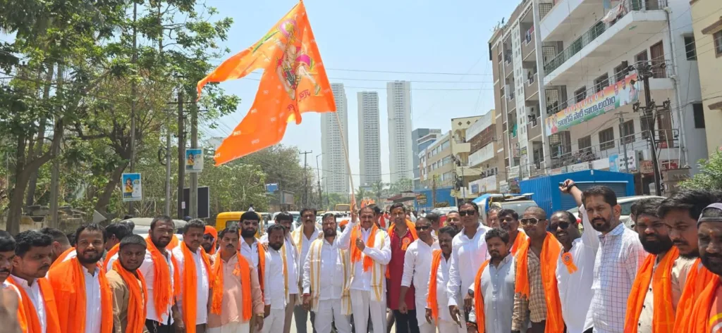 శేరిలింగంపల్లి, ఏప్రిల్ 2 (నమస్తే శేరిలింగంపల్లి): హనుమాన్ జయంతి పర్వదినంను పురస్కరించుకుని శేరిలింగంపల్లి డివిజన్ పరిధిలోని లింగంపల్లి లో సీనియర్ నాయకుడు చింతకింది రవీందర్ గౌడ్ ఆధ్వర్యంలో నిర్వహించిన హనుమాన్ శోభాయాత్రలో మాజీ కార్పొరేటర్ నార్నె శ్రీనివాసరావు, సీనియర్ నాయకులు రఘునాథ్ రెడ్డి, మారబోయిన రాజు యాదవ్ లతో కలిసి PAC చైర్మన్ ఆరెకపూడి గాంధీ ముఖ్య అతిథిగా పాల్గొని ప్రత్యేక పూజలు చేసి హనుమాన్ శోభయాత్రలో పాల్గొన్నారు. ఈ సందర్భంగా PAC చైర్మన్ గాంధీ మాట్లాడుతూ శేరిలింగంపల్లి నియోజకవర్గ ప్రజలందరికీ హనుమాన్ జయంతి శుభాకాంక్షలు తెలియచేస్తున్నానని అన్నారు. ఎక్కడ శ్రీరాముడు కొలువై ఉంటాడో, ఎక్కడ శ్రీరామ నామం వినిపిస్తుందో అక్కడ హనుమంతుడు ఉంటాడని, ఆయనను మించిన భక్తుడు లేడని అన్నారు. ఈ కార్యక్రమంలో నాయకులు , కార్యకర్తలు, మహిళలు, భక్తులు తదితరులు పాల్గొన్నారు.