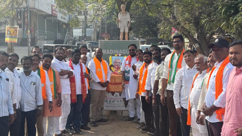 శేరిలింగంపల్లి, డిసెంబర్ 25 (నమస్తే శేరిలింగంపల్లి): శేరిలింగంపల్లి నియోజకవర్గం హఫీజ్ పేట్ డివిజన్ భారతీయ జనతా పార్టీ అధ్యక్షుడు కైతాపురం జితేందర్ ఆధ్వర్యంలో మదీనాగూడ గ్రామంలోని గాంధీ విగ్రహం వద్ద భారతరత్న , మాజీ ప్రధాన మంత్రి అటల్ బిహారీ వాజపేయి 101వ జయంతి సందర్భంగా ఆయన చిత్రపటానికి పూలమాలలు వేసి ఘన నివాళులు అర్పించారు. ఈ సందర్భంగా కైతాపురం జితేందర్, బీజేపీ సీనియర్ నాయకులు మహేష్ యాదవ్ , అజిత్ సేనాపతి మాట్లాడుతూ ప్రజాస్వామ్య విలువలు, సమగ్ర పాలన, అచంచలమైన దేశభక్తికి నిదర్శనమైన అటల్ జీవితం మనందరికీ మార్గదర్శకం. ఆయన దూరదృష్టి, ఆదర్శాలు నిరంతర ప్రేరణనిస్తాయని అన్నారు.