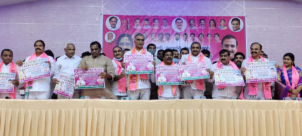 • సంఘీబావ పోస్ట‌ర్‌ను ఆవిష్క‌రించిన మంత్రి హ‌రీష్‌రావు, ప్ర‌భుత్వ విప్ గాంధీ, ఎమ్మెల్సీలు