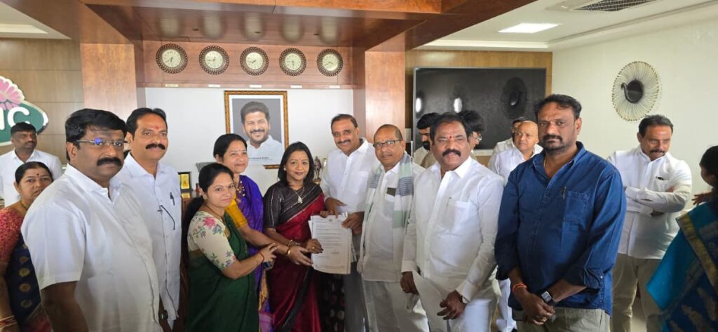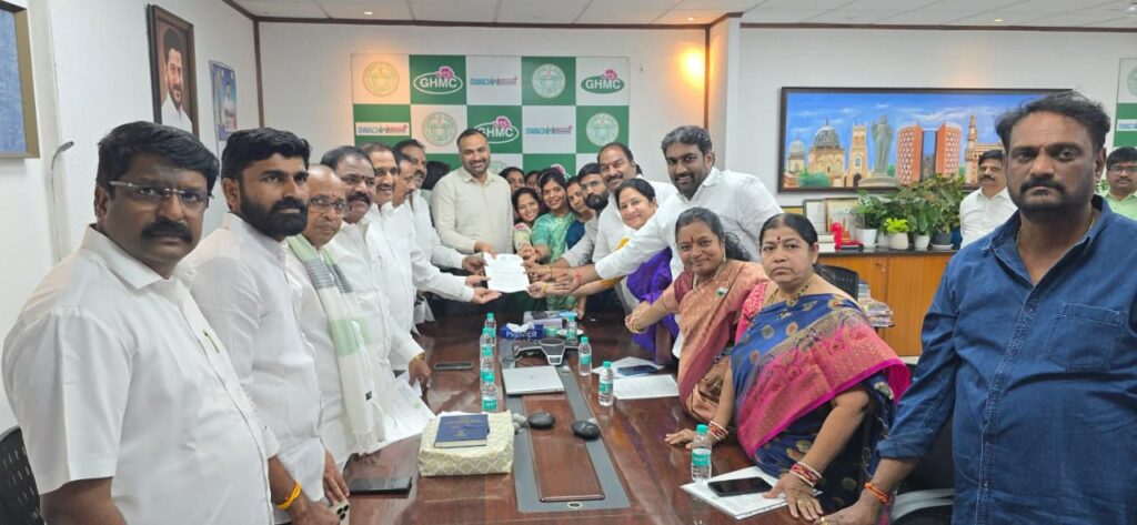 శేరిలింగంప‌ల్లి, డిసెంబ‌ర్ 15 (న‌మ‌స్తే శేరిలింగంప‌ల్లి): GHMC పరిధిలో ఇటీవల ప్రకటించిన డివిజన్ల పునర్విభజనలో నెలకొన్న సమస్యలు, పరిష్కరించాల్సిన చర్యలపై, వార్డుల పునర్విభజనలో మార్పులు , చేర్పుల గురించి మేయర్ గద్వాల్ విజయలక్ష్మి, GHMC కమిషనర్ RV కర్ణన్ ల‌ను GHMC ప్రధాన కార్యలయంలో ఎమ్మెల్యేలు ప్రకాష్ గౌడ్, దానం నాగేందర్, ఎమ్మెల్సీ బల్మూరి వెంకట్, డిప్యూటీ మేయర్ మోతె శ్రీలత శోభన్ రెడ్డి, కార్పొరేటర్లు రాగం నాగేందర్ యాదవ్, దొడ్ల వెంకటేష్ గౌడ్, జగదీశ్వర్ గౌడ్, నార్నె శ్రీనివాసరావు, ఉప్పలపాటి శ్రీకాంత్, మంజుల రఘునాథ్ రెడ్డి, ఇతర కార్పొరేటర్లతో కలిసి PAC చైర్మన్ ఆరెకపూడి గాంధీ వినతిపత్రం సమర్పించారు.