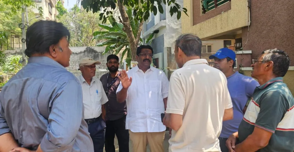 శేరిలింగంపల్లి, ఏప్రిల్ 13 (నమస్తే శేరిలింగంపల్లి): మియాపూర్ డివిజన్ పరిధిలోని FCI కాలనీలో తలెత్తిన డ్రైనేజ్ సమస్యను జలమండలి DGM నారాయణ, కాలనీ వాసులతో కలసి మియాపూర్ డివిజన్ మాజీ కార్పొరేటర్ ఉప్పలపాటి శ్రీకాంత్ పరిశీలించారు. ఈ సందర్భంగా శ్రీకాంత్ మాట్లాడుతూ ఎఫ్సిఐ, వీడియో కాలనీలలో అసంపూర్తిగా మిగిలిపోయిన డ్రైనేజీ సమస్యలను త్వరితగతిన పరిష్కరిస్తామని అన్నారు. డ్రైనేజి వ్యవస్థను మెరుగుపరుస్తామని, పొంగుతున్న మ్యాన్ హోల్ ల వద్ద పునరుద్ధరణ చేస్తామని తెలిపారు. సమస్యను త్వరలోనే పరిష్కరిస్తామని, మంచి నీటి వ్యవస్థను మెరుగుపరుస్తామని అన్నారు. ఈ కార్యక్రమంలో కాలనీ వాసులు సుప్రజ, ఉమాకిషన్, జితేందర్, వర్క్ ఇన్స్పెక్టర్లు కనకరాజు , లింగయ్య, నాగరాజు, సిబ్బంది తదితరులు పాల్గొన్నారు.