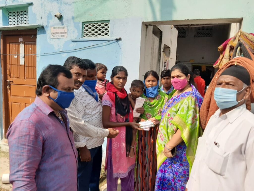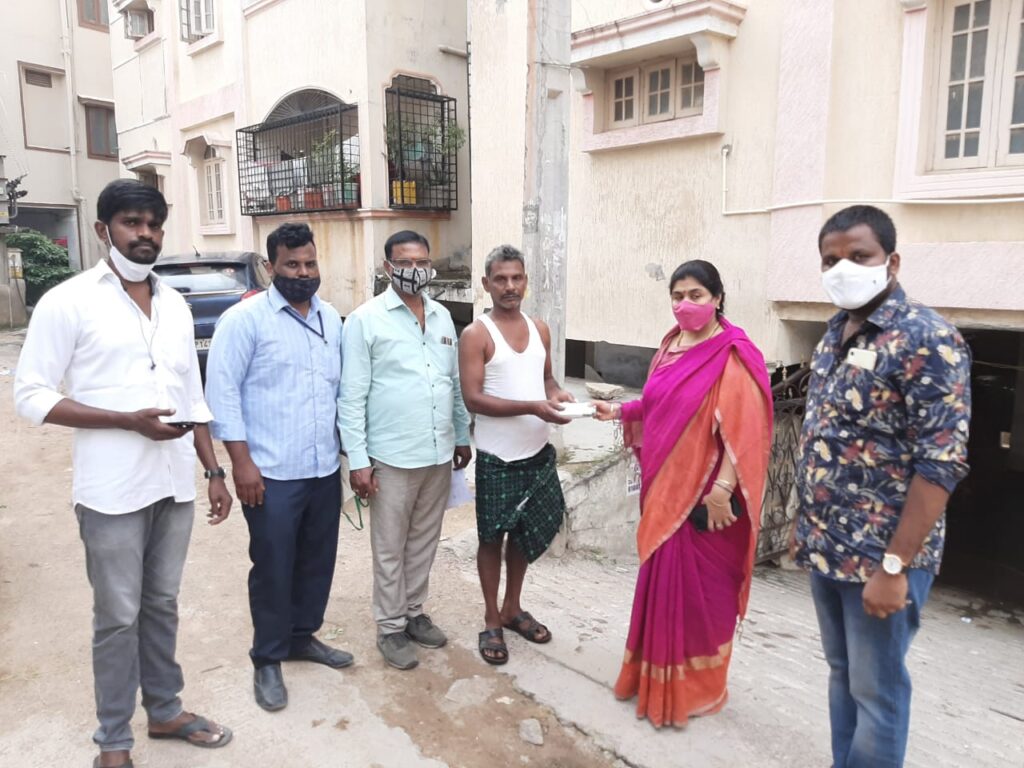 బాధితుల‌కు రూ.10వేలు అంద‌జేస్తున్న కార్పొరేట‌ర్ వి.పూజిత జ‌గ‌దీశ్వ‌ర్ గౌడ్