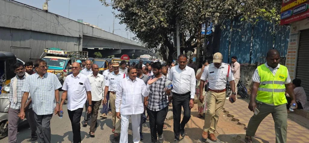 శేరిలింగంపల్లి, ఫిబ్రవరి 17 (నమస్తే శేరిలింగంపల్లి): కొండాపూర్ డివిజన్ పరిధిలోని వైట్ ఫీల్డ్ శ్రీ రామాలయం దేవాలయం నుండి అంజయ్య నగర్ వరకు నెలకొన్న ట్రాఫిక్ సమస్య పరిష్కారానికి తీసుకోవాల్సిన చర్యలపై డీసీ బాలకృష్ణ, ట్రాఫిక్ సిఐ శ్రీ సురేష్, GHMC ఇంజనీరింగ్ విభాగం, టౌన్ ప్లానింగ్ విభాగం అధికారులతో కలిసి PAC చైర్మన్ ఆరెకపూడి గాంధీ పరిశీలించారు. ఈ సందర్బంగా PAC చైర్మన్ గాంధీ మాట్లాడుతూ వైట్ ఫీల్డ్ కాలనీ వాసుల విజ్ఞప్తి మేరకు కాలనీలో పాదయాత్ర చేయడం జరిగిందని, వైట్ ఫీల్డ్ రామాలయం దేవాలయం నుండి అంజయ్య నగర్ వరకు నిత్యం ట్రాఫిక్ సమస్య తో ప్రజలు తీవ్ర ఇక్కట్లు పడుతున్నారు అని అన్నారు. ట్రాఫిక్ సమస్య పరిష్కారానికి రోడ్డు విస్తరణకు తీసుకోవాల్సిన చర్యల పై అధికారులతో కలిసి పాదయాత్ర గా వెళ్లడం జరిగిందని, సాఫ్ట్ వేర్ ఉద్యోగులు, పాఠశాలల కు, కళశాలలకు వెళ్లే విద్యార్థులకు, ఉద్యోగులకు, వ్యాపారస్తులకు ఎటువంటి ఇబ్బందులు లేకుండా ట్రాఫిక్ సమస్య తలెత్తకుండా అన్ని రకాల చర్యలు తీసుకుంటామని తెలిపారు.