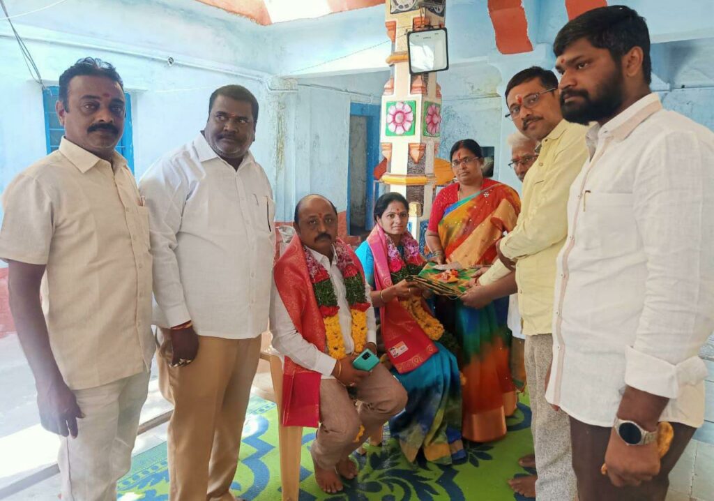 కార్పొరేటర్ మంజుల రఘునాథ్ రెడ్డి దంపతులకు తీర్థ ప్ర‌సాదాల‌ను అంద‌జేస్తున్న పండితులు