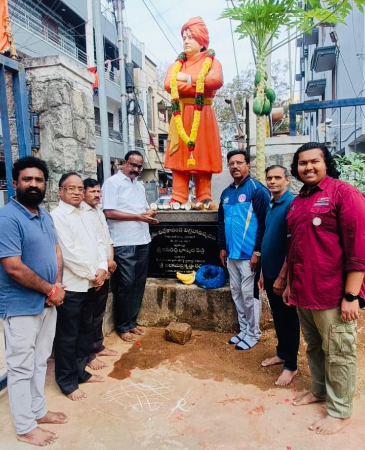 శేరిలింగంప‌ల్లి, జ‌న‌వ‌రి 12 (న‌మస్తే శేరిలింగంప‌ల్లి): స్వామి వివేకానంద భారత దేశ ఖ్యాతిని ప్రపంచానికి చాటిచెప్పిన మహనీయుడు అని బిజెపి నాయకుడు కసిరెడ్డి భాస్కరరెడ్డి అన్నారు. స్వామి వివేకానంద జయంతి సందర్భంగా గౌతమీ నగర్ మున్సిపల్ పార్కు, చందానగర్ లోని వివేకానంద విగ్రహానికి పూలమాలలు వేసి ఘనంగా నివాళులు అర్పించిన అనంతరం ఆయన మాట్లాడుతూ వివేకానంద ఆశయాలకు అనుగుణంగా ఆయన చెప్పిన మార్గాన యువత నడవాలని పిలుపునిచ్చారు. ఈ కార్యక్రమంలో కాలనీ అసోసియేషన్ అధ్యక్షుడు నూనె సురేందర్, కార్యదర్శి ఆదిశేషయ్య, నూకల తనవ్ తదితరులు పాల్గొన్నారు.
