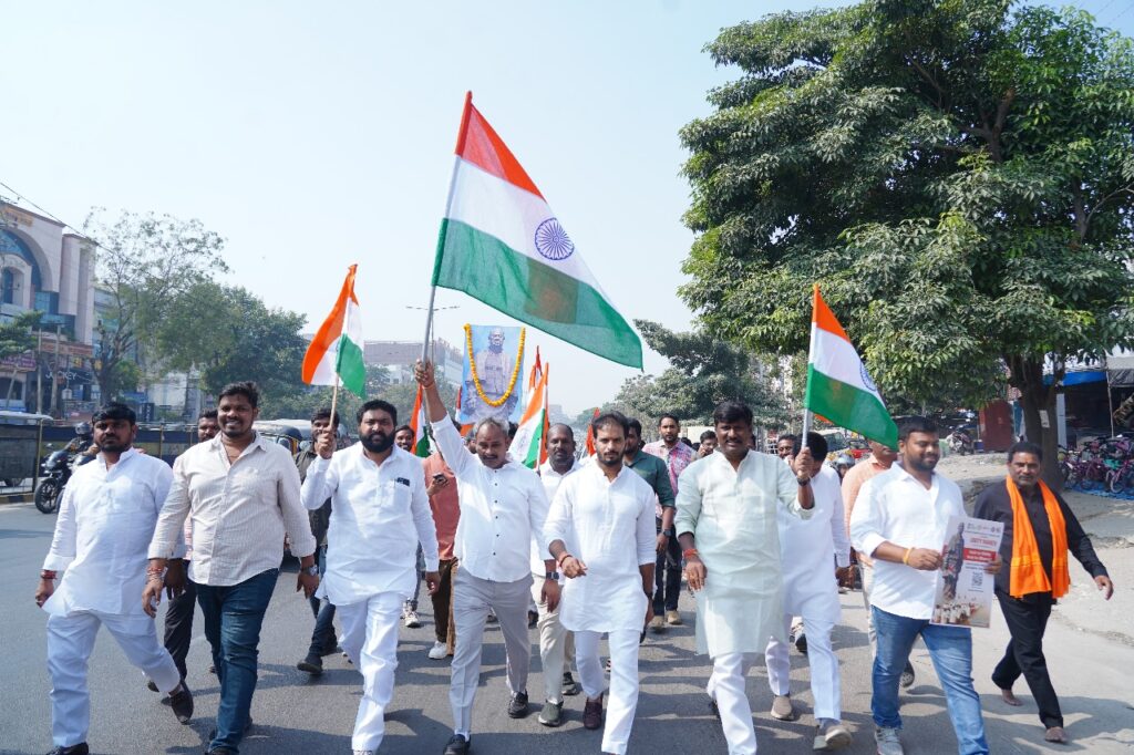 శేరిలింగంప‌ల్లి, న‌వంబ‌ర్ 26 (న‌మ‌స్తే శేరిలింగంప‌ల్లి): సర్దార్ వల్లభాయ్ పటేల్ 150వ జయంతి ఉత్సవాల‌ను పురస్కరించుకుని కేంద్ర ప్రభుత్వం ఆదేశాల మేరకు దేశవ్యాప్తంగా 352 జిల్లాలో నిర్వహిస్తున్న యూనిటీ మార్చ్ కార్యక్రమాన్ని మియాపూర్ డివిజన్ విజేత సూపర్ మార్కెట్ నుండి బొల్లారం చౌరస్తా వద్ద ఉన్న చైతన్య కాలేజీ వరకు నిర్వహించారు. ఇందులో చేవెళ్ల పార్లమెంట్ సభ్యుడు కొండా విశ్వేశ్వర్ రెడ్డి పాల్గొని జెండా ఊపి కార్య‌క్ర‌మాన్ని ప్రారంభించారు. యువకులు, విద్యార్థిని, విద్యార్థులతో నిర్వహించిన సమావేశంలో రంగారెడ్డి అర్బన్ జిల్లా అధ్యక్షుడు వనిపల్లి శ్రీనివాస్ రెడ్డి, కూకల్ ప‌ల్లి బీజేపీ నాయకుడు కాంతారావు, చేవెళ్ల పార్లమెంట్ కన్వీనర్ మల్లారెడ్డి, యూత్ అఫైర్స్ ఆఫీసర్ ఐజాక్, చైతన్య కాలేజీ ఏజిఎం రవికుమార్, కార్యక్రమ కన్వీనర్ మణిభూషణ్, ఇతర నాయకులతో కలిసి బీజేపీ శేరిలింగంపల్లి అసెంబ్లీ కంటెస్టెడ్ ఎమ్మెల్యే, ఇంఛార్జి రవికుమార్ యాదవ్ పాల్గొన్నారు.