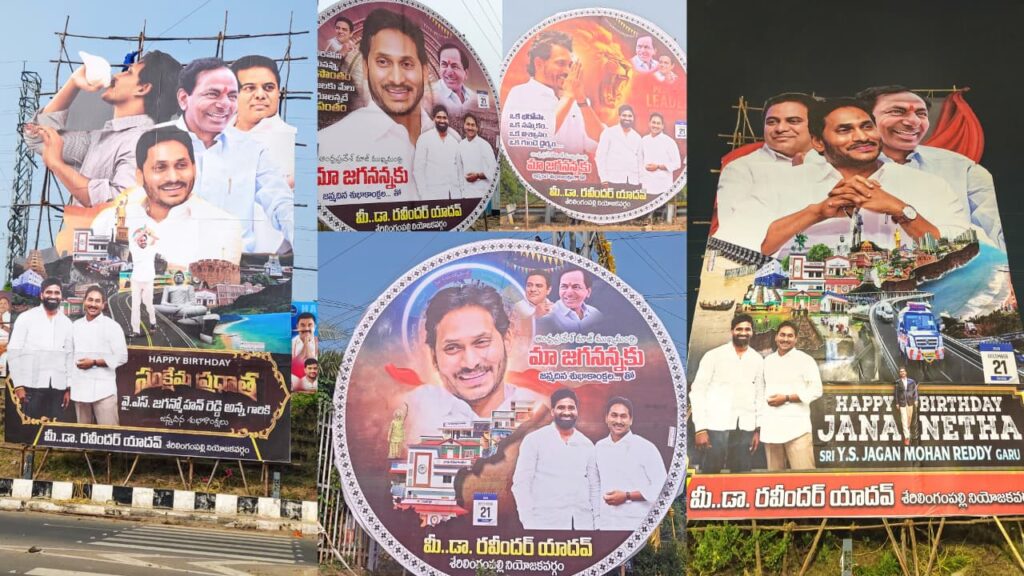 శేరిలింగంపల్లి, డిసెంబర్ 20 (నమస్తే శేరిలింగంపల్లి): ఆంధ్రప్రదేశ్ మాజీ సీఎం, వైసీపీ అధినేత వైఎస్ జగన్ మోహన్ రెడ్డి జన్మదినం సందర్భంగా రాజకీయాలు ఆసక్తికరంగా మారాయి. తెలంగాణ తొలి సీఎం కేసీఆర్, భారాస వర్కింగ్ ప్రెసిడెంట్ కేటీఆర్ లతో పాటు వైఎస్ జగన్ కలిసి ఉన్న కటౌట్ లు అమరావతి, తాడేపల్లిలోని వైసీపీ కేంద్ర కార్యాలయం, విజయవాడలో వెలిశాయి. సంక్షేమ ప్రధాత వైఎస్ జగన్ మోహన్ రెడ్డికి జన్మదిన శుభాకాంక్షలు అని తెలుపుతూ శేరిలింగంపల్లికి చెందిన భారాస సీనియర్ నాయకుడు రవీందర్ యాదవ్ వీటిని ఏర్పాటు చేశారు. వైసీపీ కార్యకర్తలు, నాయకులనే కాదు, తెలంగాణ, ఆంధ్రప్రదేశ్ లోని రాజకీయ వర్గాల్లో విపరీంతంగా చర్చ సాగింది. ఈ మధ్య కేటీఆర్, జగన్ సైతం బెంగళూరులో కలవడం, ఇప్పుడు ఆంధ్రప్రదేశ్ రాష్ట్ర రాజధాని అమరావతి, తాడేపల్లి, విజయవాడలో కేసీఆర్, కేటీఆర్, జగన్ కలిసి ఉన్నట్లుగా కటౌట్ లు కనిపించడంతో చర్చనీయాంశంగా మారింది. వైసీపీ, భారాస మధ్య బలమైన దోస్తీ కొనసాగుతుందని చెబుతూ, వచ్చే ఎన్నికల్లో ఇటు కేసీఆర్, అటు జగన్ అధికారంలోకి రాబోతున్నారనే సందేశాన్ని ఇచ్చేలా కటౌట్ లు ఏర్పాటు చేశారు.