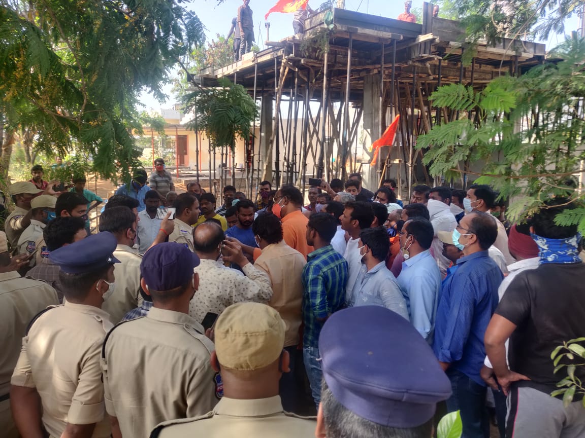 దీంతో భారీ పోలీసు బందోబస్తు నడుమ హెచ్ఎండీఏ సిబ్బంది కూల్చివేతలు చేపట్టారు. గత రెండు రోజులుగా చేపడుతున్న నిర్మాణాన్ని స్థానికులు స్వయంగా తొలగించుకోగా గత కొంత కాలం క్రితం చేపట్టిన స్టేజిలాంటి నిర్మాణాన్ని జేసీబీ సాయంతో హెచ్ఎండీఏ సిబ్బంది కూల్చి వేశారు. నిర్మాణ కూల్చివేతలను అడ్డుకున్న వారిలో బిజెపి నేతలు కసి రెడ్డి భాస్కర రెడ్డి, రవి కుమార్ యాదవ్, చింతకింది గోవర్ధన్ గౌడ్, రాఘవేంద్ర రావు, రాచమల్ల నాగేశ్వర్ గౌడ్, రాగిరి సాయిరామ్ గౌడ్, శివకుమార్ వర్మ, రాజశేఖర్, పి. వేణుగోపాల్, మానిక్. మహేష్, లక్ష్మణ్, రాఘవేంద్ర రావు, కేశవు గుండె గణేష్ ముదిరాజ్, బస్తీ నాయకులు అనిల్, పల్లె మురళి, సుఖన్య, ఆకుల రమేష్, మధు, వెల్డింగ్ రాజు, వెంకట్ తదితరులు ఉన్నారు.