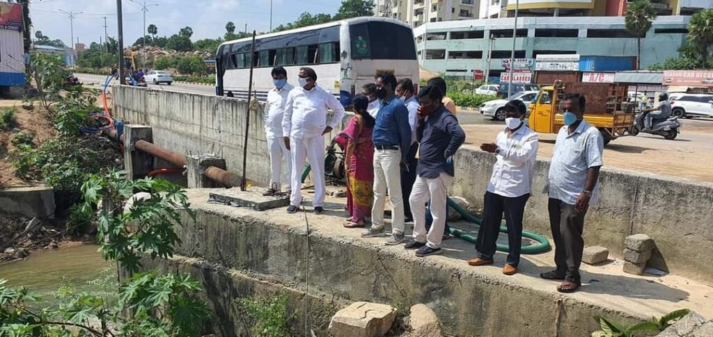 అనంతరం గచ్చిబౌలి డివిజన్ పరిధిలోని ఖాజాగూడా గ్రీన్ గ్రేస్ అపార్ట్మెంట్ ను, హెచ్ ఆర్డిసిఎల్ ఆధ్వర్యంలో నూతనంగా చేపట్టిన రోడ్డు పై గల ఔట్ లెట్ లను నీటి నిల్వ ప్రాంతాలను స్థానిక కార్పొరేటర్ సాయిబాబా హెచ్ ఆర్డిసిఎల్ సీఈ వసంత అధికారులతో కలిసి పరిశీలించారు. ఈ సందర్భంగా ఆరెకపూడి గాంధీ గారు మాట్లాడుతూ ఎడ తెరిపి లేకుండా ఆకాలంగా కురిసిన అకాల భారీ వర్షాల కారణంగా ముంపు ప్రాంతలలో కలిగే సమస్యలను స్వయంగా తెలుసుకోవడానికి ముంపు ప్రాంతల్లో పర్యటించి,సహాయక చర్యల పనులను స్వయంగా పర్యవేక్షిస్తున్నట్లు తెలిపారు. అదేవిధంగా అసంపూర్తిగా మిగిలి పోయిన రోడ్డు పనులను పూర్తి చేయలని ,ఔట్ లెట్ లను వెంటనే పూర్తి చేసి ప్రజలకు ఎటువంటి ఇబ్బంది లేకుండా చర్యలు చేపడుతున్నట్లు తెలిపారు. నియోజకవర్గం లో ముంపు ప్రాంతాల్లో ఎక్కడ సమస్య ఉన్న తక్షణమే అధికారులతో కలిసి వెళ్లి సమస్య పరిష్కారానికి కృషి చేయడం జరుగుతుందని తెలిపారు. నాల విస్తరణ పనులలో భాగంగా మిగిలిపోయిన అసంపూర్తి పనులను వెంటనే చేపట్టాలని,త్వరితగతిన పూర్తి చేసి ప్రజలకు అందుబాటులోకి తీసుకురావాలని అధికారులను ఆదేశించారు.