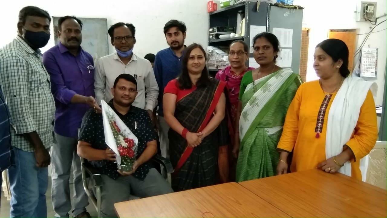 నమస్తే శేరిలింగంపల్లి: ఎంతో కాలంగా తమతో పాటు అధ్యాపకుడిగా పనిచేస్తూ డిప్యూటేషన్ పై మరో విద్యాసంస్థకు బదిలీ అయిన లెక్చరర్కు తోటి అధ్యాపకులు ఆత్మీయ వీడ్కోలు పలికారు. శేరిలింగంపల్లి మండల పరిధిలోని భెల్ టౌన్ షిప్ లో గల ప్రభుత్వ డిగ్రీ కళాశాలలో భౌతిక శాస్త్రం లెక్షరర్ గా పనిచేసిన టి. సురేష్ కుమార్ కమిషనరేట్ హైయర్ ఎడ్యుకేషన్ కు డిప్యూటేషన్ పై వెళ్లనున్నాడు. దీంతో కళాశాల ప్రధానోపాధ్యాయురాలు డాక్టర్ కే. అరుణబాయి ఆధ్వర్యంలో సహ అధ్యాపలకులు, కళాశాల సిబ్బంది సురేష్ను సత్కరించి ఆత్మీయ వీడ్కోలు పలికారు. ఈ కార్యక్రమంలో అధ్యాపకులు మురళీకృష్ణ, డాక్టర్ గోపాల్, సురేష్ కుమార్, బిక్షపతి, కావ్యలతో పాటు కళాశాల సిబ్బంది తదితరులు పాల్గొన్నారు.