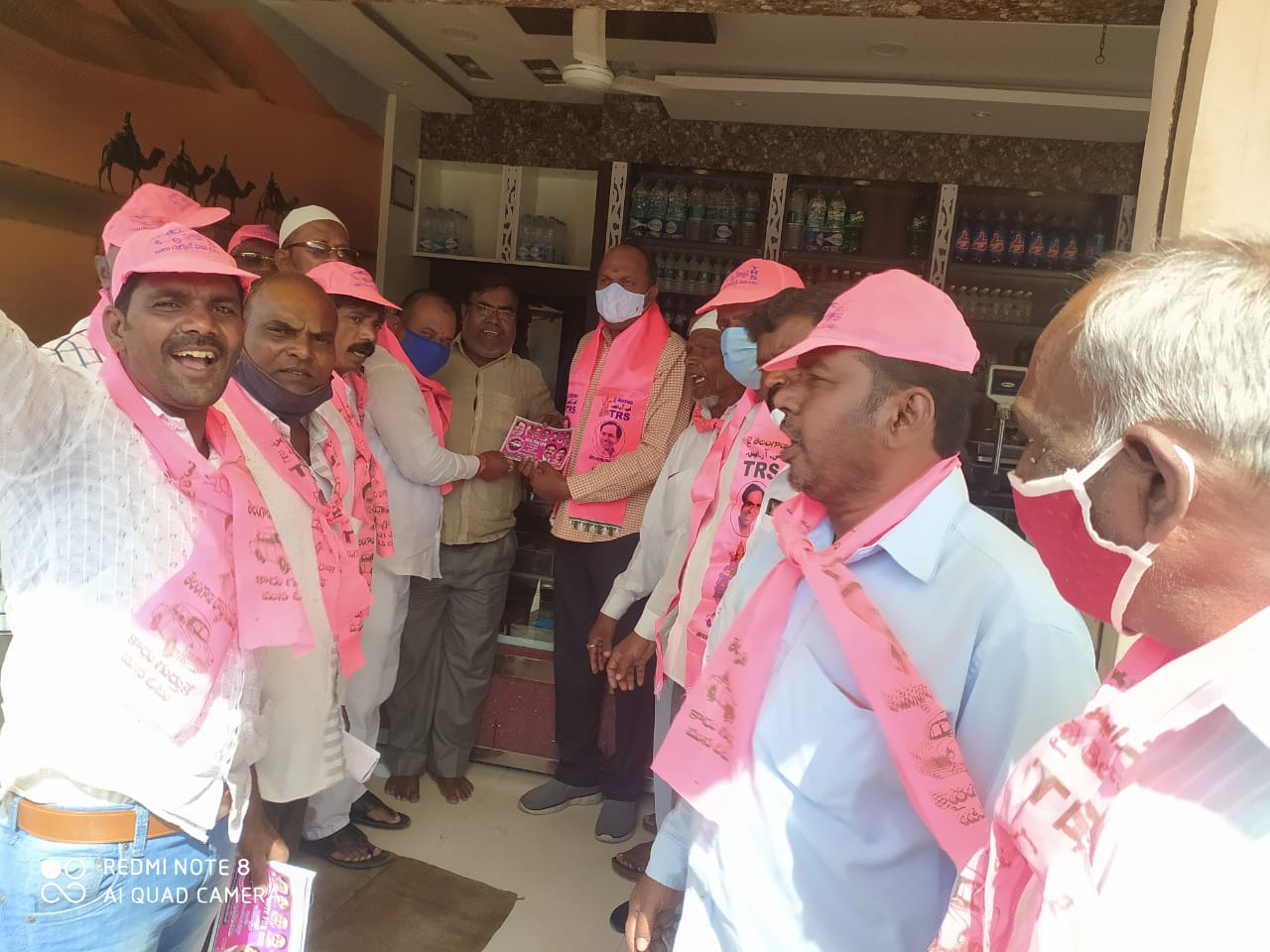 ఎన్నికల ప్రచారం లో పార్టీ నాయకులతో కలిసి ప్రజలకు కరపత్రాలు అందజేస్తున్న దృశ్యం