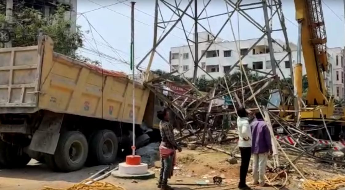 గచ్చిబౌలి(నమస్తే శేరిలింగంపల్లి): వేగంగా వెళ్తూ అదుపుతప్పిన ఓ లారీ హైటెన్షన్ స్థంబాన్ని ఢీ కొట్టడంతో విద్యుత్ తీగ తెగిపడిన ఘటన గచ్చిబౌలి పోలీస్స్టేషన్ పరిధిలో చోటు చేసుకుంది. తీగ ఎవరినీ తగలకపోవడంతో పెను ప్రమాదం తప్పింది. ఈ ఘటనకు సంబంధించిన వివరాలు ఇలా ఉన్నాయి. కొండాపూర్ రాఘవేంద్ర కాలనీలో మంగళవారం ఓ టిప్పర్ లారీ అదుపుతప్పి హైటెన్షన్ విద్యుత్ స్థంబాన్ని ఢీ కొట్టడంతో విద్యుత్ తీగ తెగి రోడ్డుపై పడింది. వెంటనే అప్రమత్తమైన ట్రాన్స్కో అధికారులు విద్యుత్ సరఫరాను నిలిపివేశారు. విషయం తెలుసుకున్న పోలీసులు సంఘటన స్థలానికి చేరుకుని తక్షణ చర్యలను చేపట్టారు. లారీ డ్రైవర్ ఘటన స్థలం నుండి పరారయ్యాడు. విద్యుత్ తీగ ఎవరికీ తగలకపోవడంతో ప్రాణనష్టం తప్పింది. ఘటన కారణంగా సుమారు రూ.1 కోటి నష్టం జరిగినట్లు ట్రాన్స్కో అధికారులు తెలుపుతున్నారు. క్రేన్ సహాయంతో విద్యుత్ తీగలకు మరమ్మత్తులు చేపట్టి సరఫరాను పునరుద్దరించే పనిలో అధికారులు ఉన్నారు.