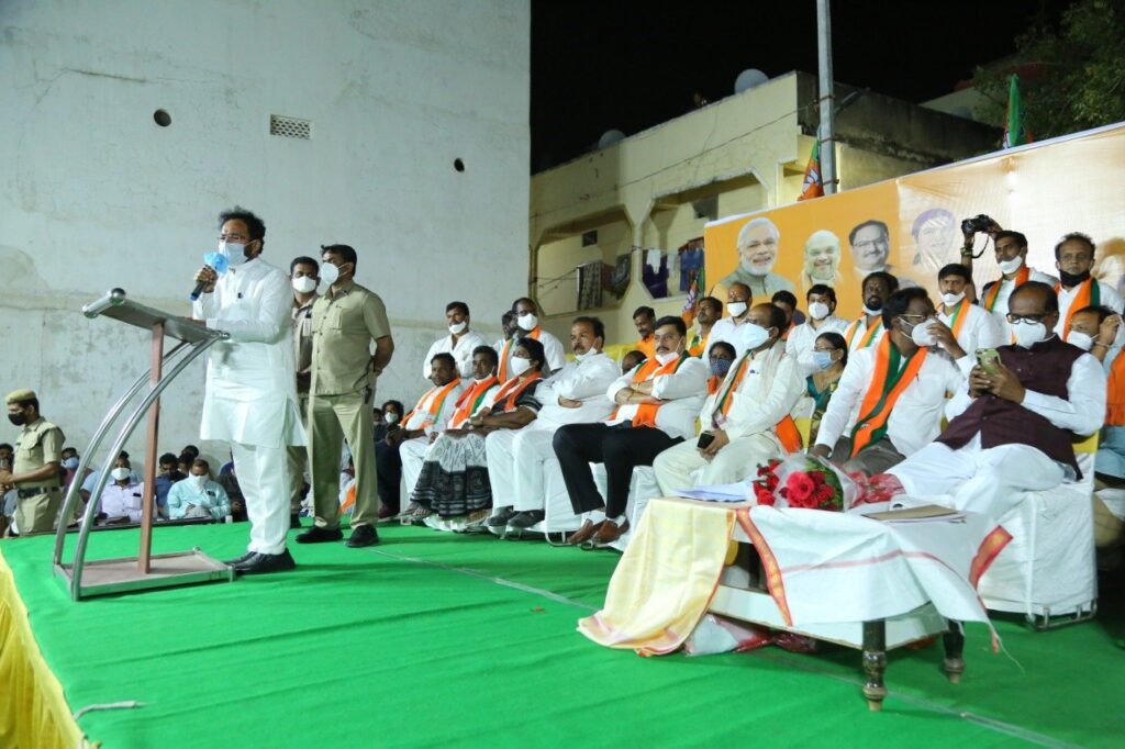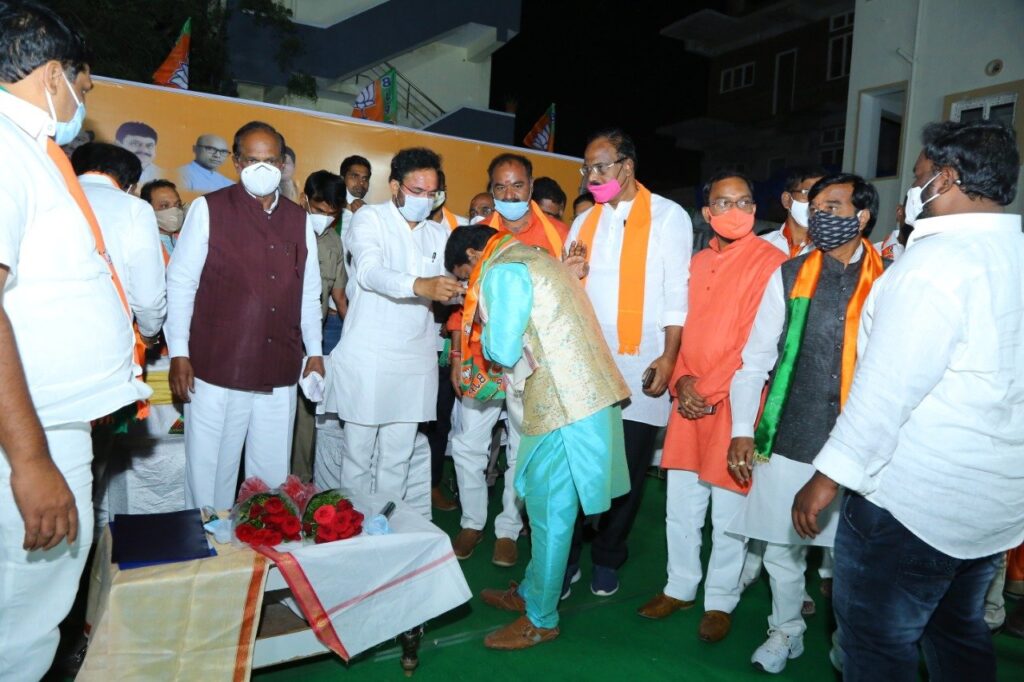 గ్రేటర్ లో టిఆర్ఎస్ అధికారంలోకి వచ్చి ఐదేళ్లు గడుస్తున్నా నిరుపేద ప్రజలకు డబుల్ బెడ్ రూమ్ ఇండ్లు అందించిన దాఖలాలు లేవన్నారు. పేదలకు ఇండ్ల విషయంలో ఆంధ్ర ముఖ్యమంత్రి జగన్ మోహన్ రెడ్డి తీసుకుంటున్న చొరవలో కొంతైనా కేసీఆర్ దృష్టి పెట్టడం లేదన్నారు. హామీలను నెరవేర్చకుండా ఏ మొహం పెట్టుకొని జిహెచ్ఎంసి ఎన్నికల్లో ఓట్లు అడుగుతారని ప్రశ్నించారు. నగరంలో చెరువులు కుంటలు కబ్జాలకు గురయ్యి ప్రతీయేడు లోతట్టు ప్రాంతాలు ప్రజలు అవస్థలు పడాల్సిన దుస్థితి దాపురించిందని, అధికార పార్టీ నేతల అండదండలతోనే ఆక్రమణలు పెరిగి పోతున్నాయని విమర్శించారు. గ్రేటర్ వాసులు గులాబీ నేతల మాటలు నమ్మి మోసపోవద్దని, కారుకు ఓటు వేస్తే మజ్లీస్ పార్టీకి ఓటు వేసినట్లేనని అన్నారు. రాష్ట్రంలో ఎక్కడా లేని విదంగా గ్రేటర్ లో మాత్రమే వరద సహాయం పేరిట పదివేల రూపాయలను అందించారని, అధికారులు చేయాల్సిన పనిని టిఆర్ఎస్ పార్టీ నాయకులు చేస్తూ ప్రజలను మభ్యపెట్టేందుకు ప్రయత్నిస్తున్నారన్నారు. తెలంగాణ రాష్టాన్ని అన్ని విధాలా ఆదుకోవడానికి కేంద్ర ప్రభుత్వం కృషి చేస్తుందన్నారు. భారతీయ జనతా పార్టీ నాయకులు ప్రజలకు ఇచ్చిన మాటకు కట్టుబడి ఉంటారని, ప్రజల నమ్మకాన్ని వమ్ము చేయని బిజెపిని గ్రేటర్ ప్రజలు గెలిపించి, టిఆర్ఎస్ పార్టీకి తగిన గుణపాఠం చెప్పాలని కోరారు. ఈ సందర్బంగా శేరిలింగంపల్లి టిడిపి సీనియర్ నాయకుడు యేశం శ్రీశైలం యాదవ్, కురుమ సంఘం శేరిలింగంపల్లి అధ్యక్షుడు శుర్ణ శ్రీశైలం కురుమలతో పాటు పలు పార్టీల నాయకులు బిజెపిలో చేరారు. పార్టీలో చేరిన నాయకులకు కిషన్ రెడ్డి కండువాలు కప్పి పార్టీలోకి ఆహ్వానించారు.